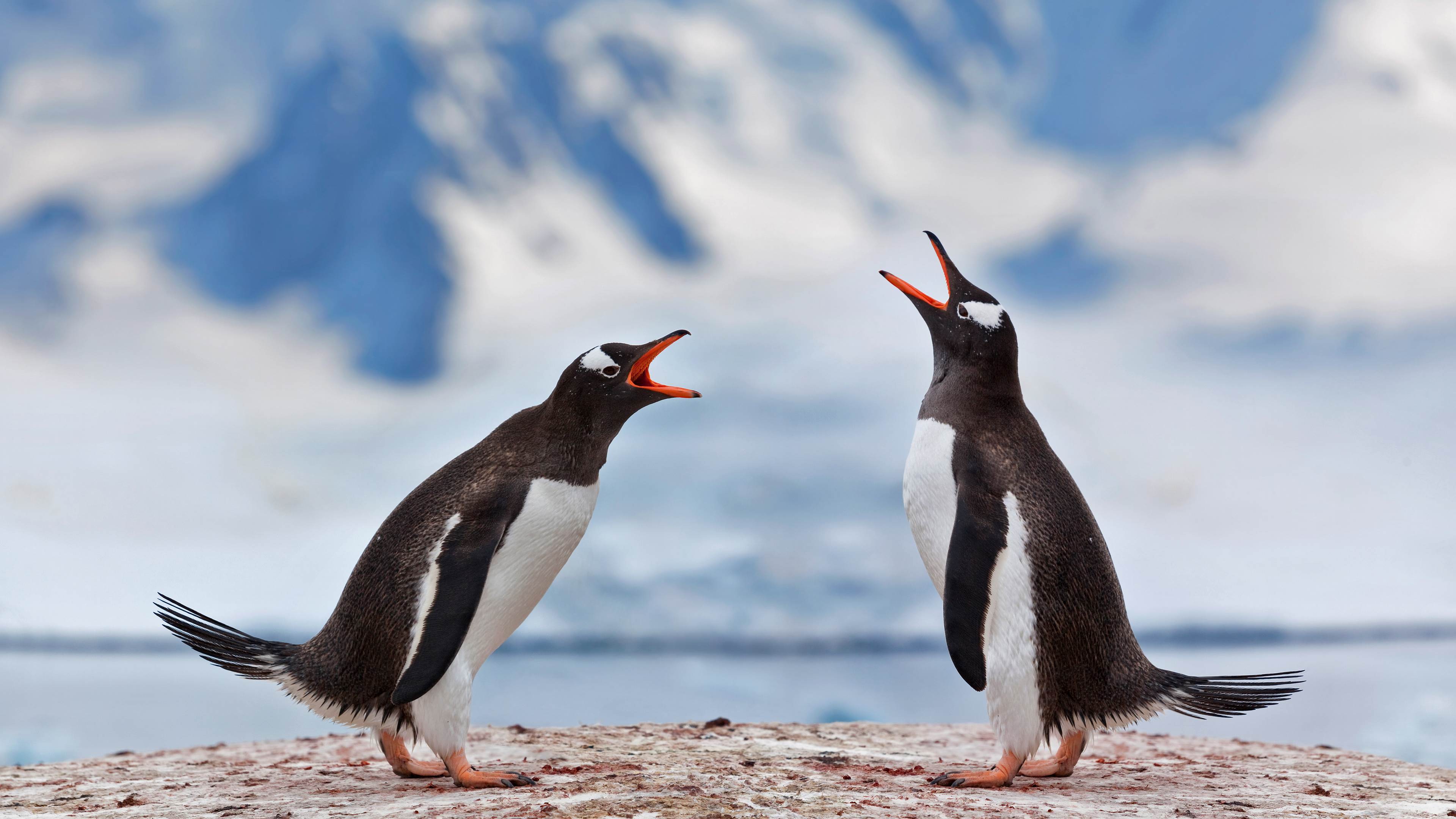 正在宣泄不满的两只巴布亚企鹅,南极洲