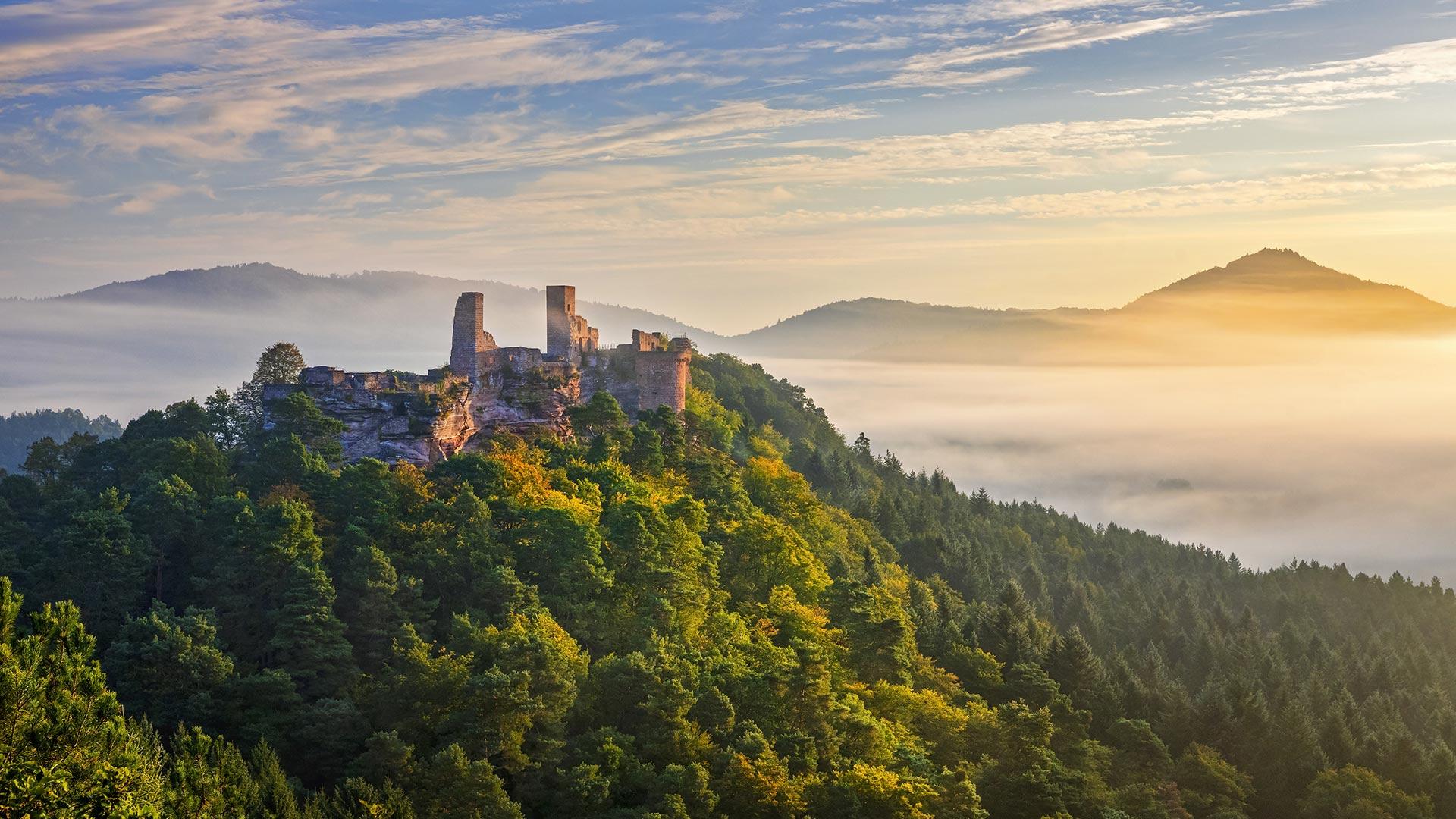 达恩附近普法尔茨森林中的Altdahn城堡,德国莱茵兰-普法尔茨Dahn Rockland, Palatinate Forest, Rhineland-Palatinate, Germany