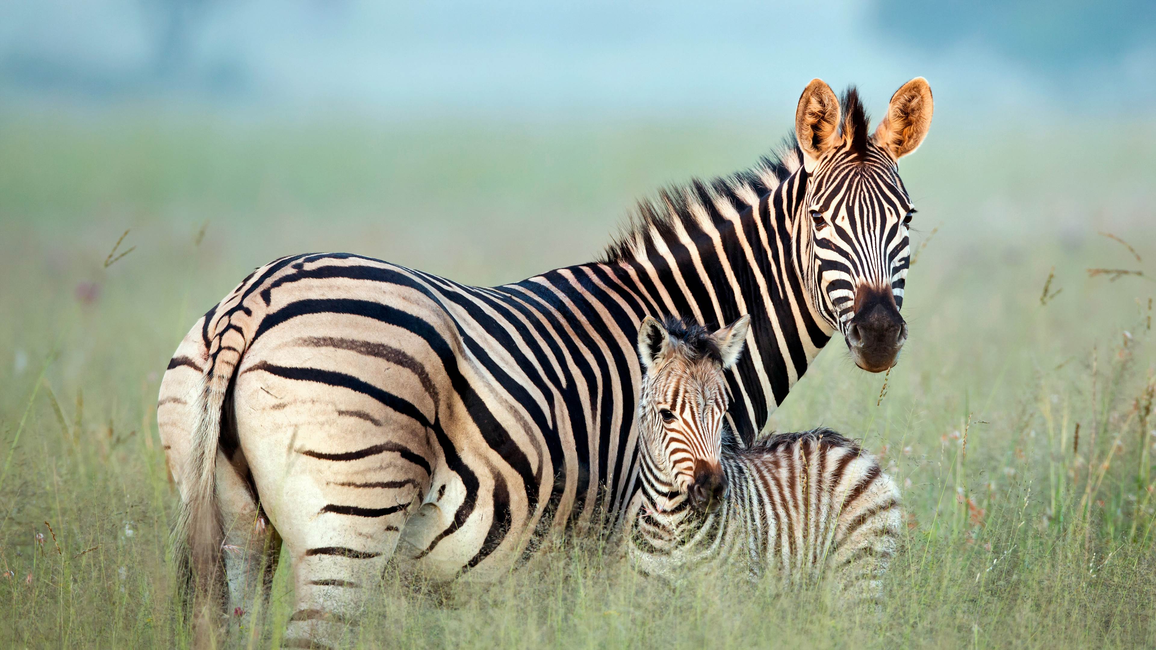 Rietvlei自然保护区内的布氏斑马母子,南非