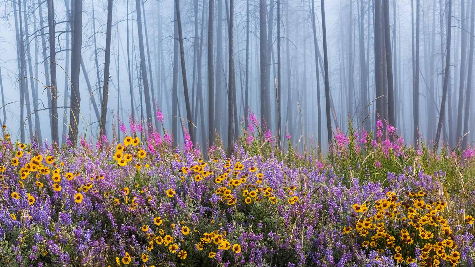 火灾烧毁大部分森林后,野花遍地的凯尔特河野营地