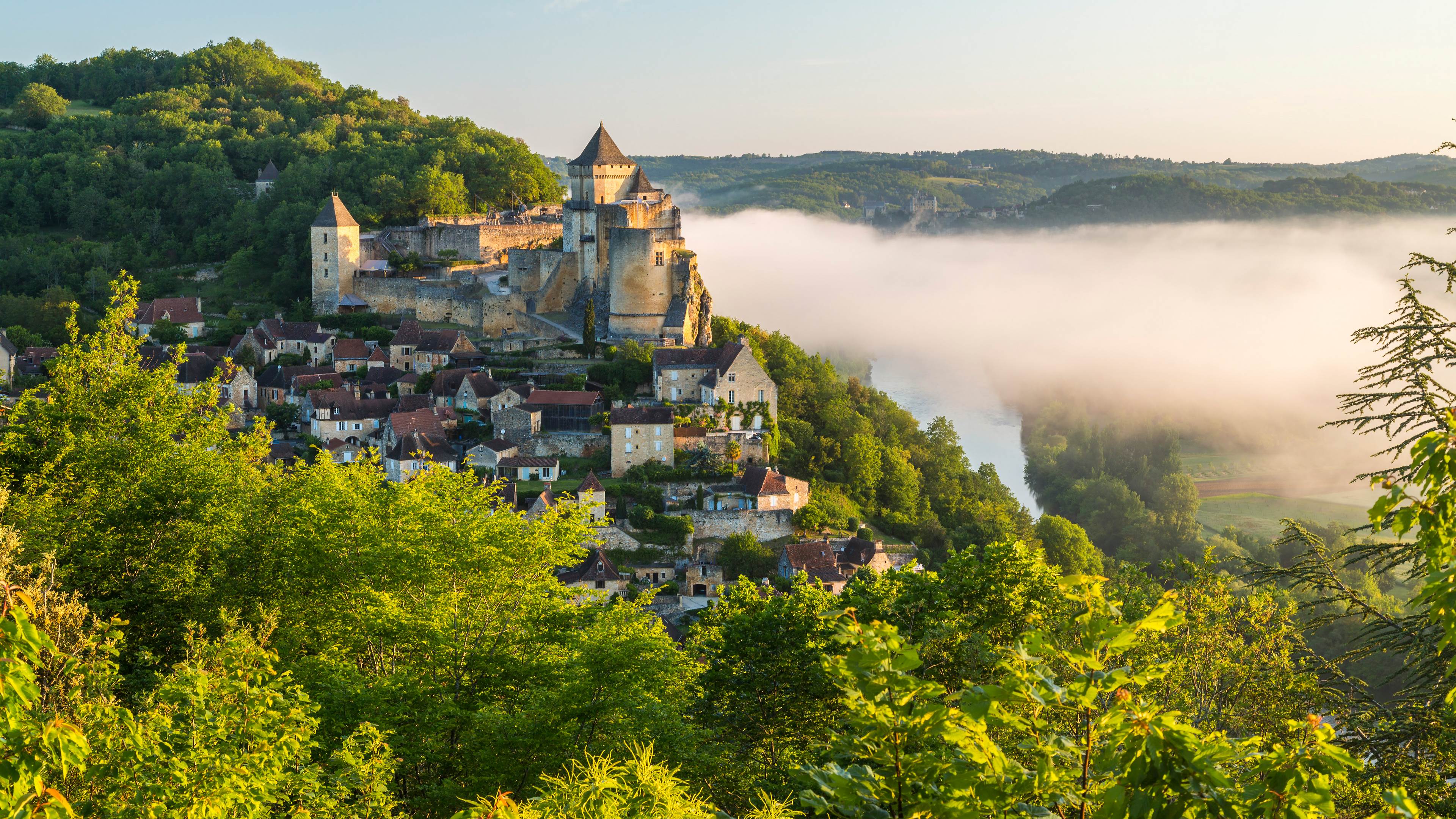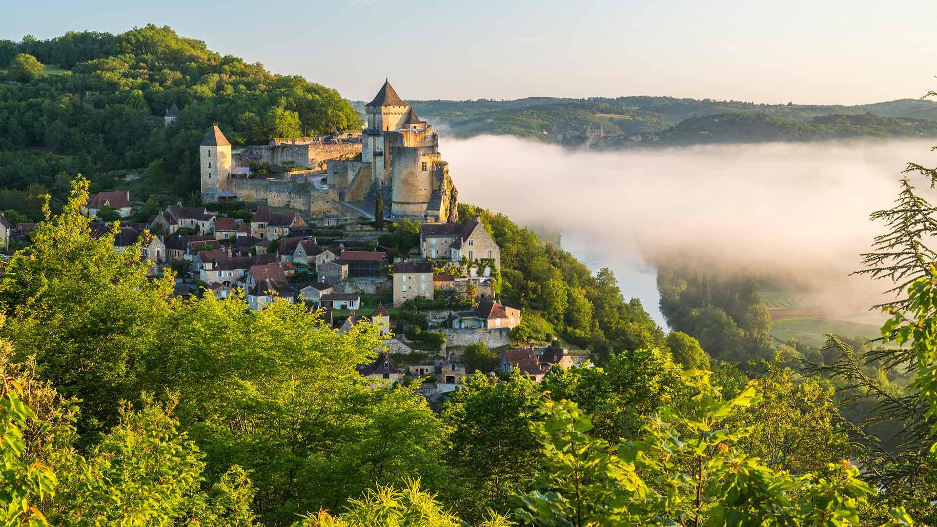 雾中的卡斯特诺城堡,法国佩里戈尔