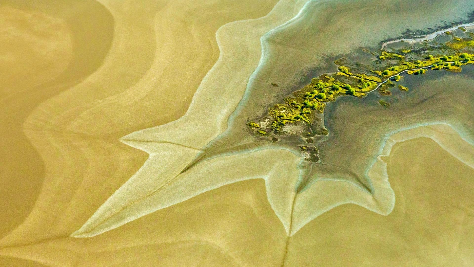 温德姆市附近King河的滩涂,澳大利亚 © Ralph Lee Hopkins/Offset “蛇行”的国王河 从上空俯瞰澳大利亚温德姆,这里有一条像蛇一样弯曲着的河流——国王河。“蛇的身体”还伸出许多“触角”,那些是国王河数不清的支流,又仿佛河流的穿行让大地都龟裂了一般。河道两侧都被郁郁葱葱的植物包裹,像描了绿色的边,而河流之外,是辽阔的滩涂。 附近 澳大利亚 上空 俯瞰 郁郁葱葱 河流 绿色 国王 弯曲 穿行 辽阔 支流 伸出 大地 触角