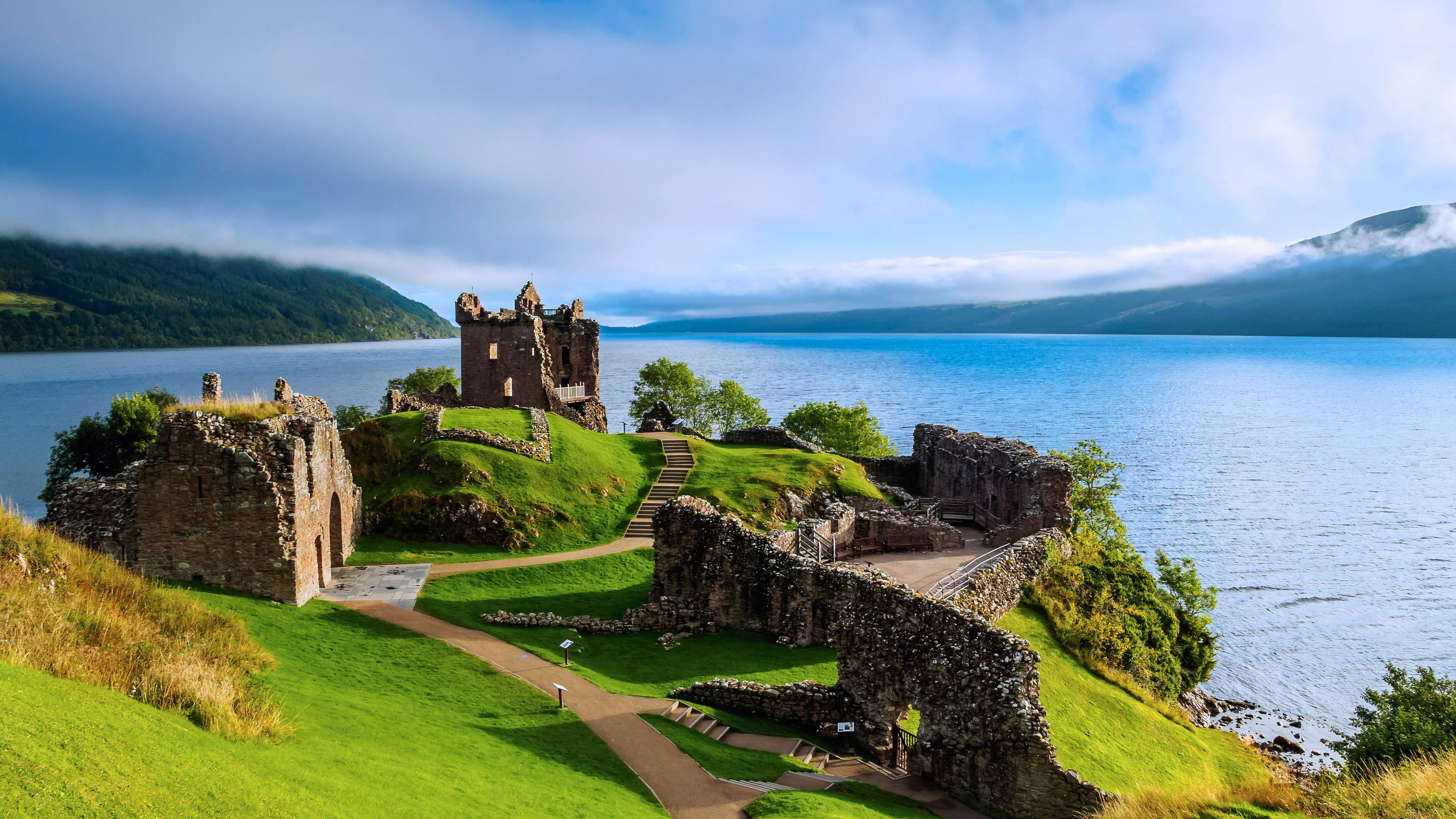 苏格兰高地上的厄克特城堡和内斯湖