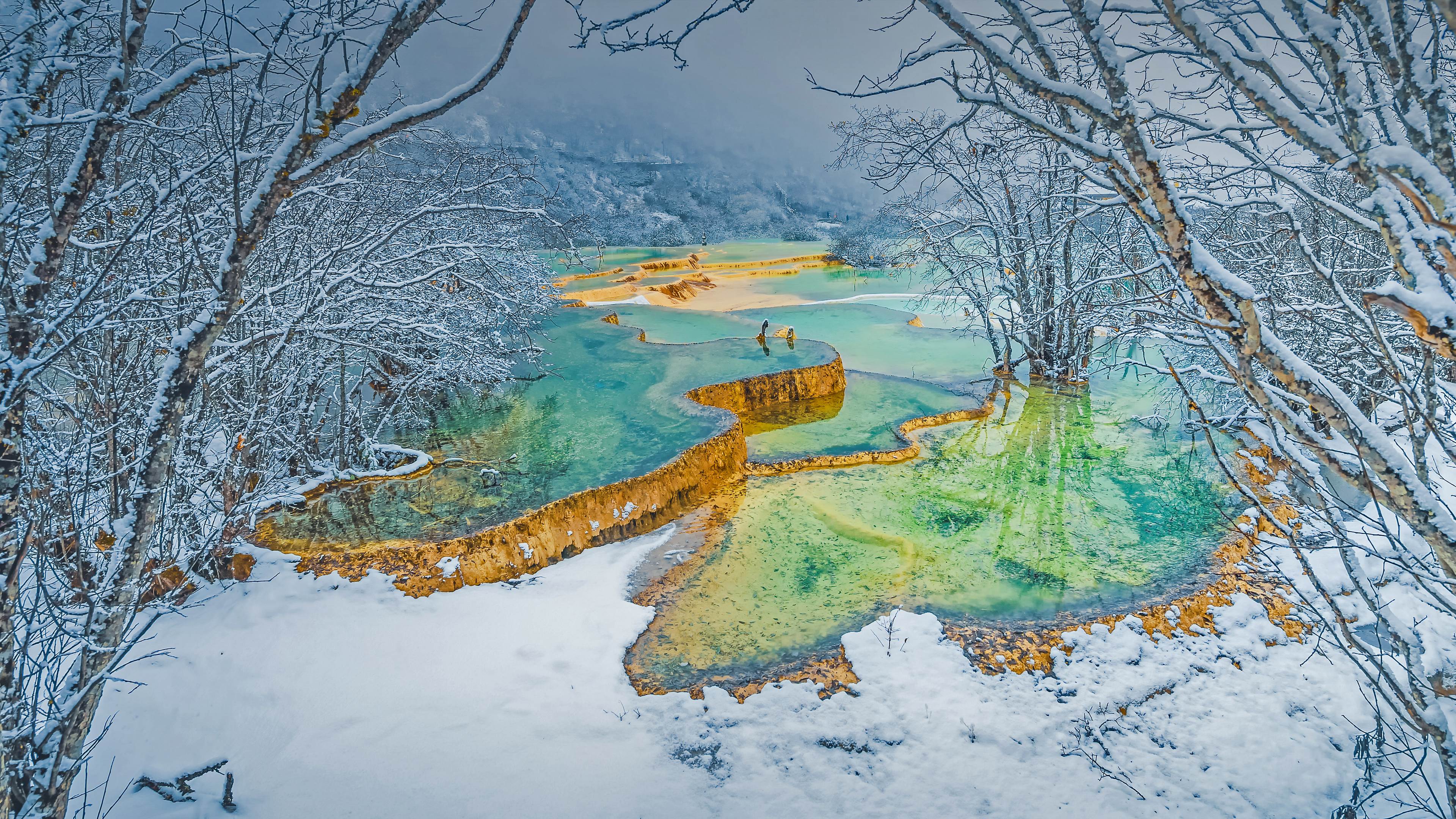 野牛在温泉边吃草, 黄石国家公园, 怀俄明州, 美国