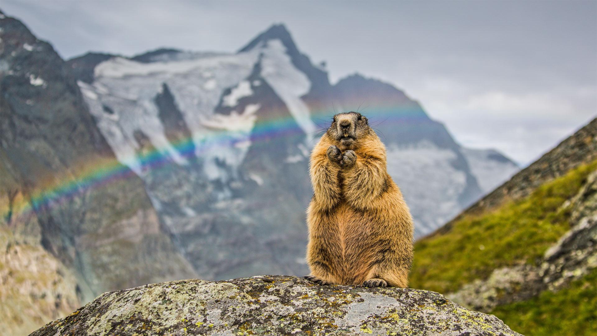 大格洛克纳山山峰前的土拨鼠,奥地利