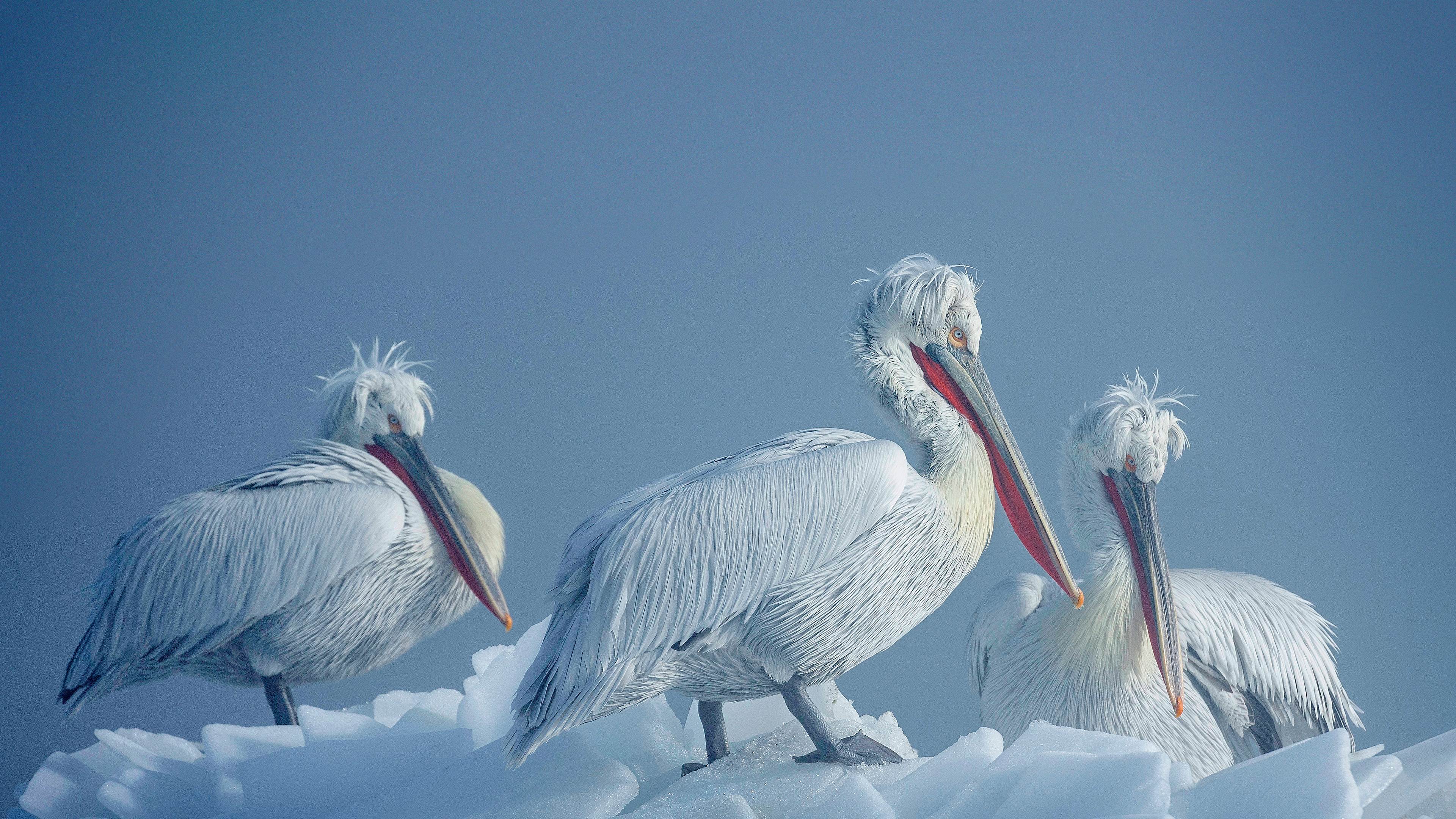 冰上的卷羽鹈鹕,希腊凯尔基尼湖
