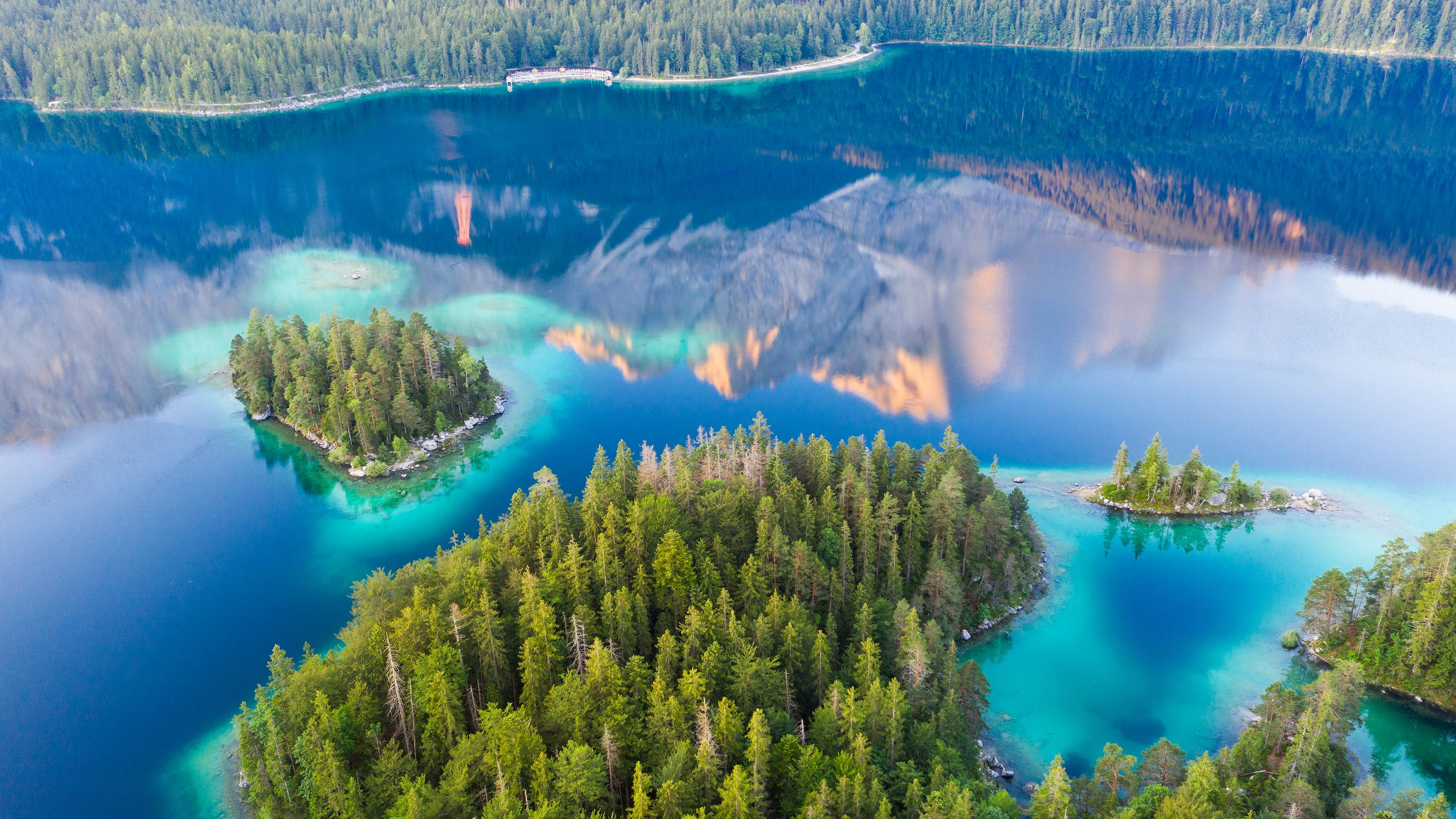 倒映在艾布湖上的楚格峰,德国巴伐利亚