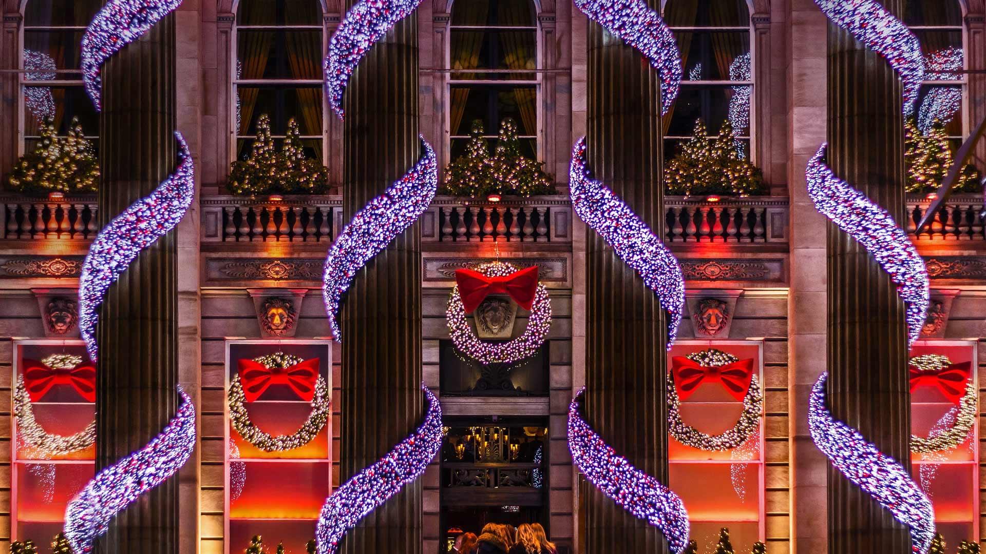 The Dome的老板,看到经典的古希腊罗马式建筑时,就想要用更多的灯来装扮,努力使这里更有节日气氛。The Dome所在的建筑前身是于1847年建设的银行的总部,是爱丁堡标志性建筑之一。在这段时间里,当你走在圣诞节拥挤的街道上,很容易看到这些餐厅和酒吧。