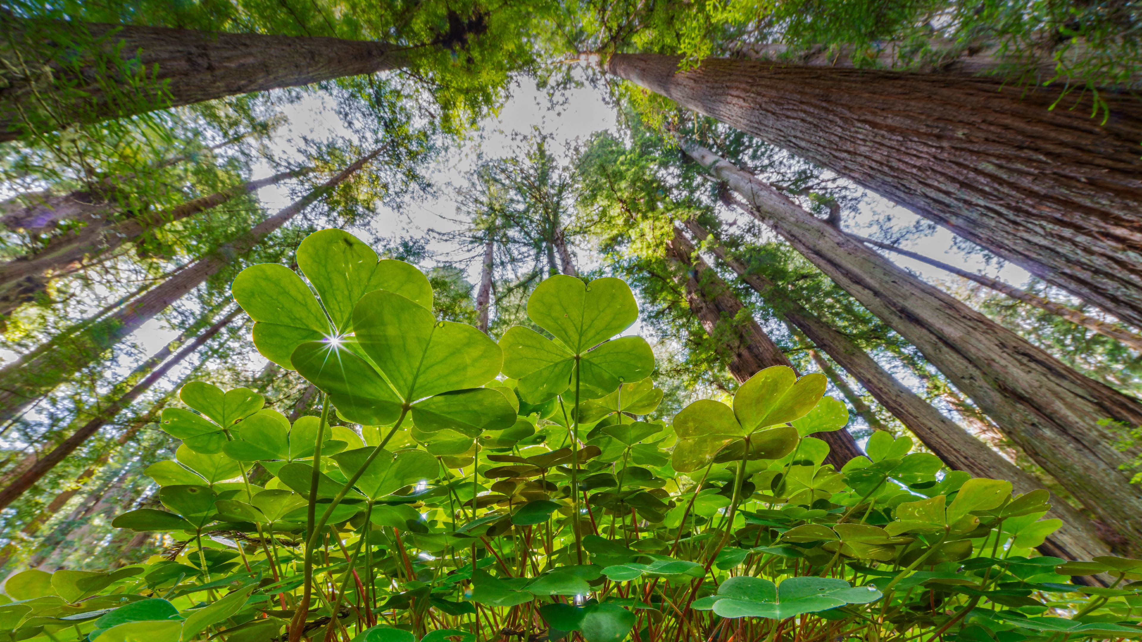 生机盎然的酢浆草和红杉树,美国大草原溪红杉州立公园