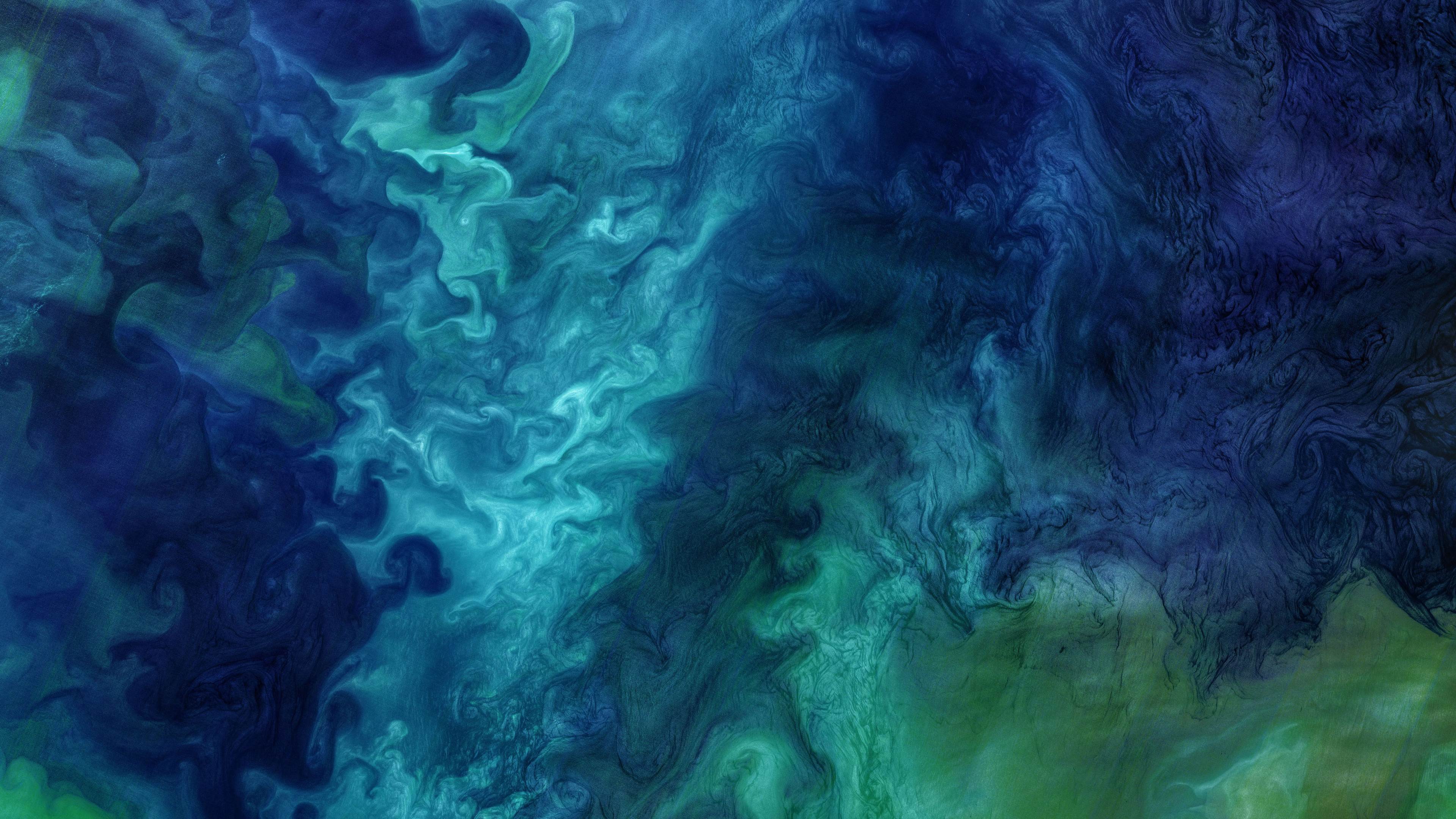 今天照片中这些交织在一起的蓝色大理石纹并非现代艺术作品,而是大自然的杰作。这是阿拉斯加海岸附近浮游植物暴发的卫星照片。