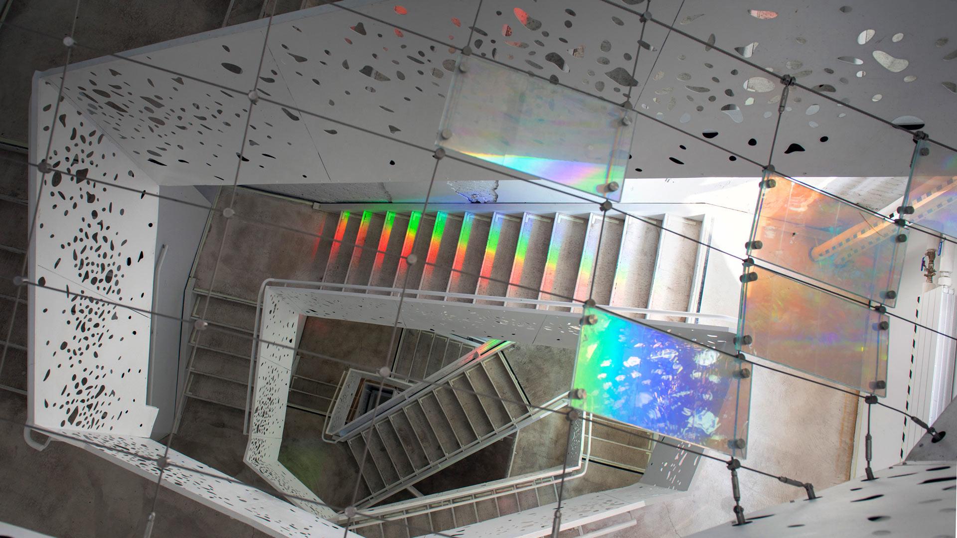 纽约大学哲学系大楼的楼梯,美国纽约 © Alex Fradkin/Gallery Stock 最酷教学楼 纽约大学六层哲学大楼顶部的天窗用棱柱形塑料覆盖着。 当阳光穿过,棱镜投射出迷你彩虹横跨墙壁,楼梯和建筑物内部的地板。大楼由美国建筑师史蒂文霍尔设计,是一个重大改造的空间,主体部分于2007年完工。 美国 纽约 彩虹 横跨 建筑师 楼梯 棱镜 霍尔 完工 顶部 投射 建筑物 天窗 大楼 史蒂文