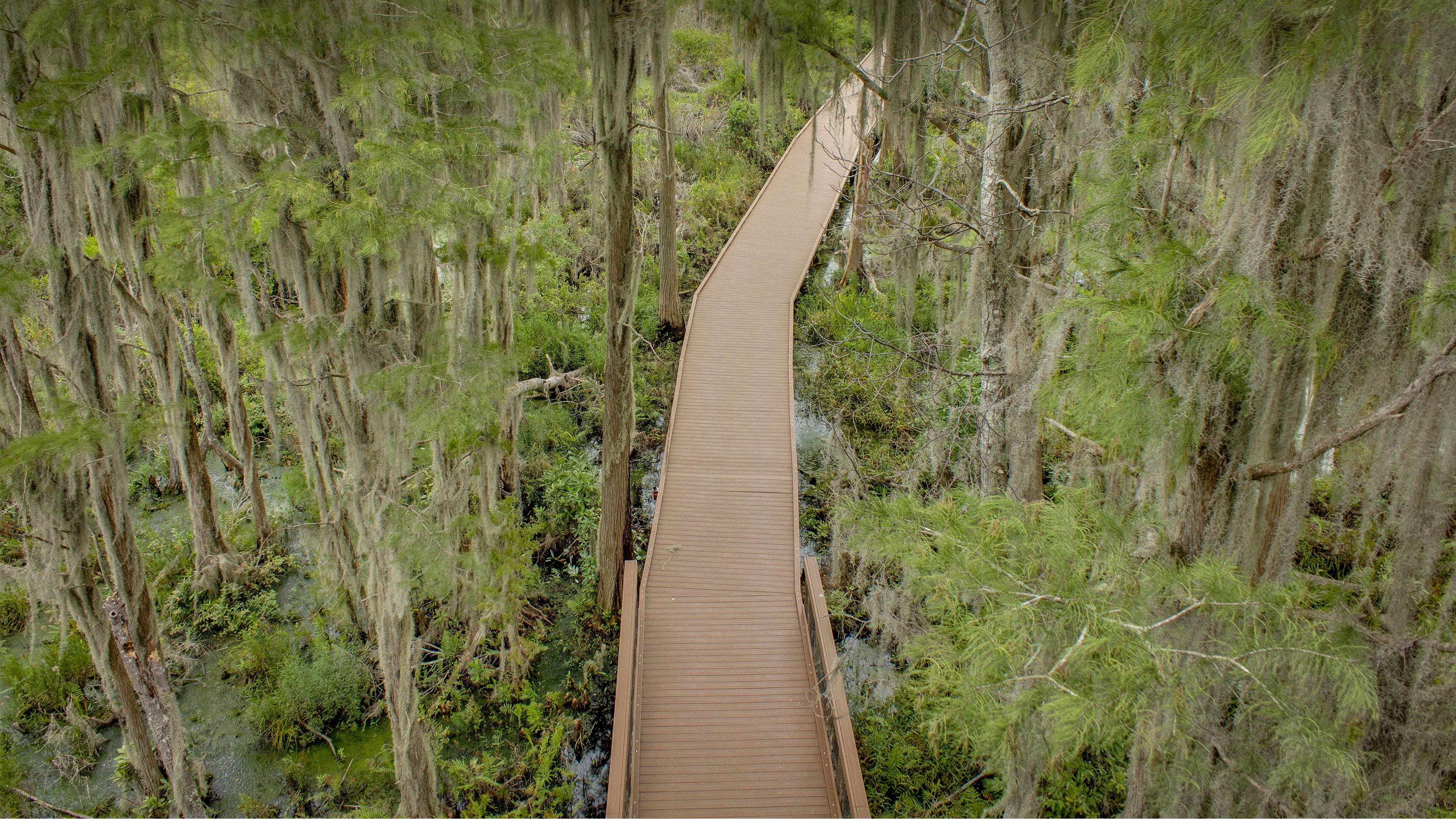 奥克弗诺基沼泽木板路上的西班牙苔藓,佐治亚州,美国