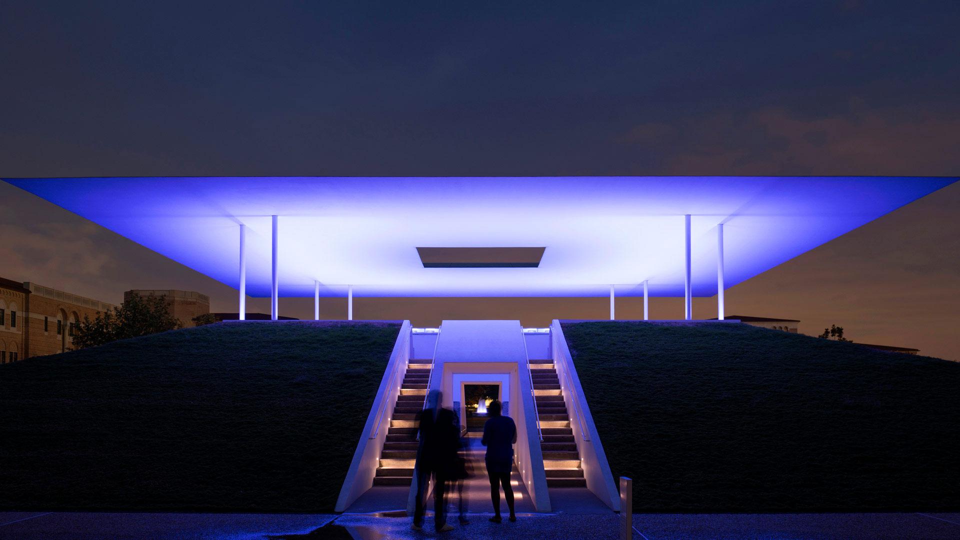 从1974年开始,艺术家詹姆斯·特瑞尔为他的“Skyspace”系列创造了四十多件装置。在德克萨斯的莱斯大学音乐学院里的这件,是作为一块音乐表演场所,LED灯从顶上照射下来,用来补充日落前后不断变化的天空色彩,平日里也可以用作音乐表演时的一个附加元素。