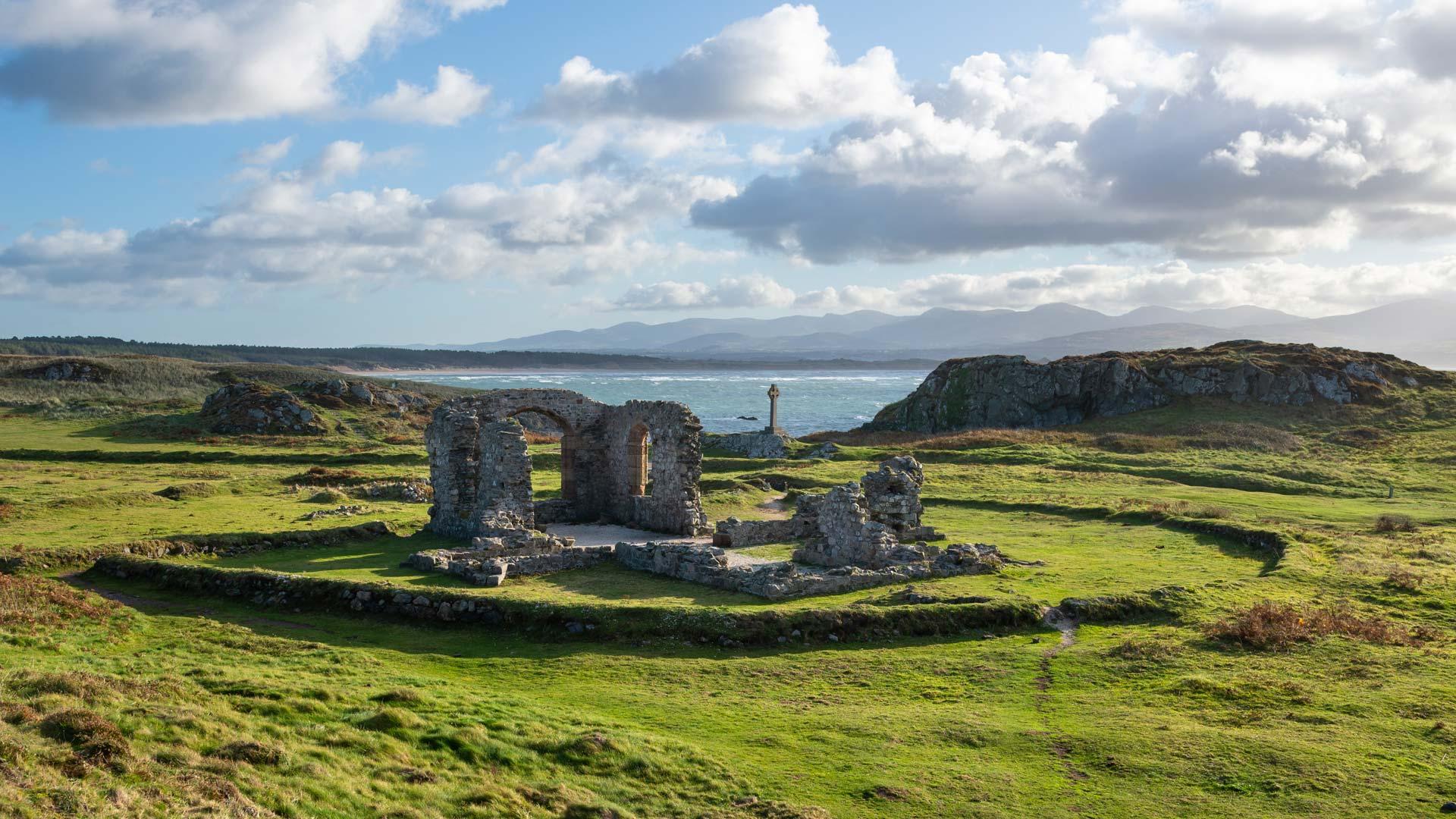 圣德温教堂的废墟,莫纳岛,威尔士,英国
