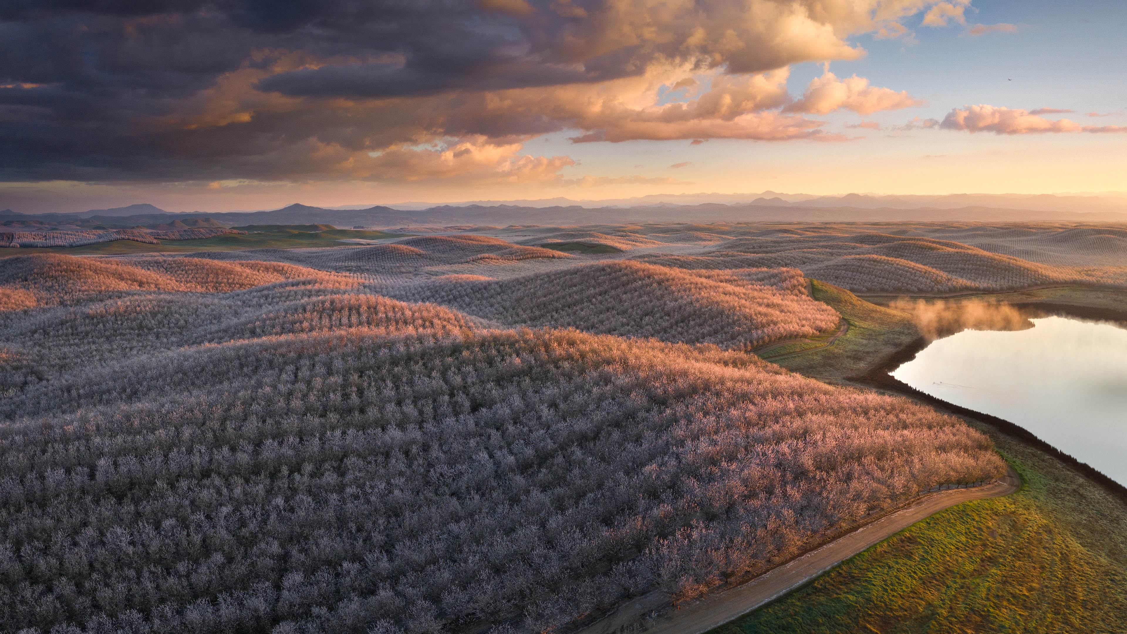 在阳光普照的金州(加利福尼亚州的别称)果园中,扁桃仁享有崇高的地位,它以美味的果实诱惑着人们的味蕾,用漂亮的花朵装点着自然环境。而加利福尼亚州种植的扁桃仁占世界市场供应量的80%,占美国市场供应量的100%。据悉,扁桃仁中含有对心脏有益的单不饱和脂肪,还富含纤维、蛋白质以及大量的维生素和矿物质,是一种营养丰富的食物。二三月份,在加利福尼亚州的中央山谷中,这些扁桃树的种子会从娇嫩的花朵中孕育出来,然后在一种毛茸茸的、有着保护作用的外壳中生长,直至成熟。扁桃树属于蔷薇科,在花期会绽放出美丽的花朵,而这些芬芳的花朵会将果园涂染成白色和粉色色调。