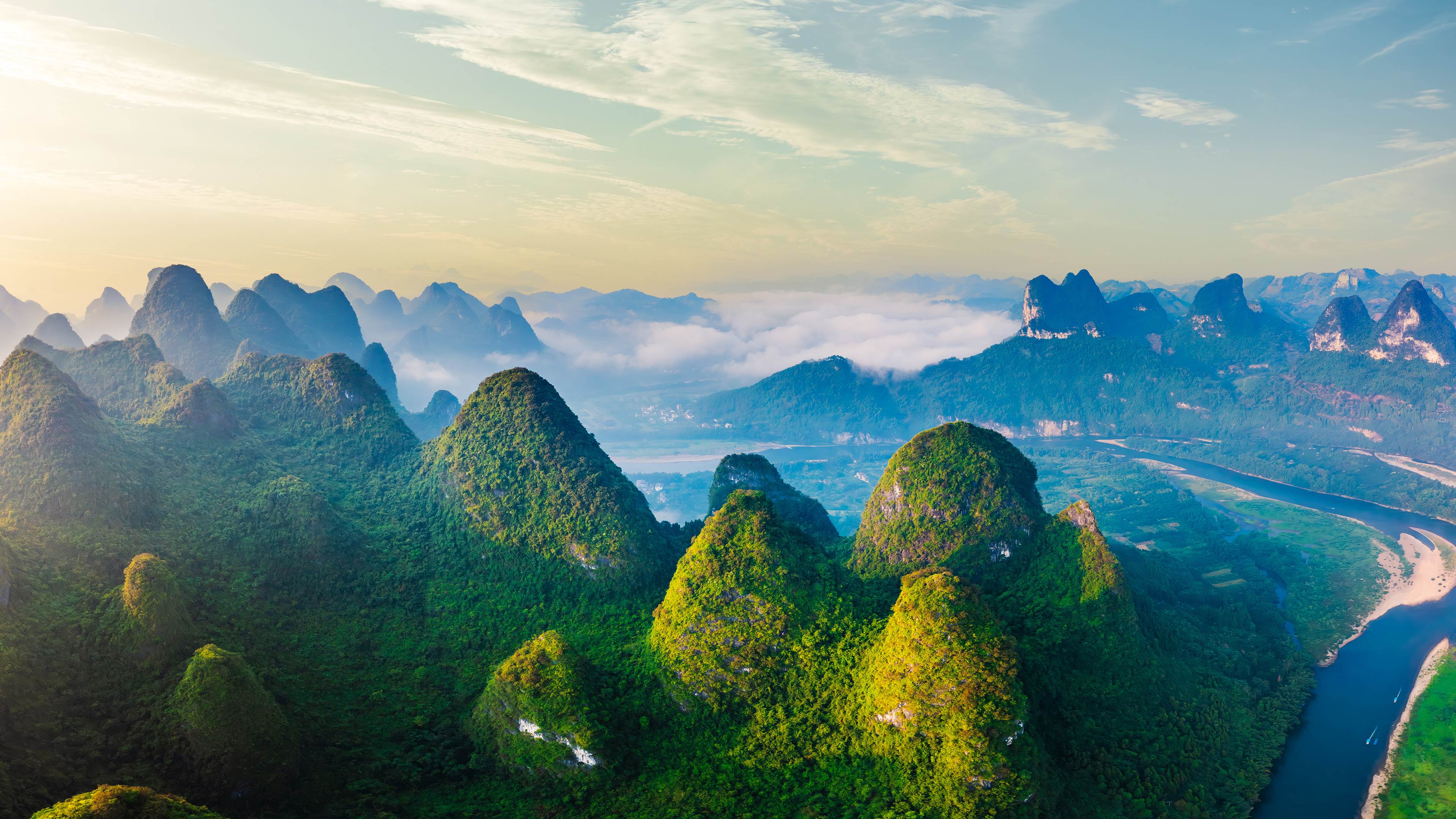 今天是立夏,标志着我们即将进入夏季,今天图片中壮丽又秀美的山河景色是位于中国桂林的喀斯特山脉景致。桂林喀斯特地貌,位于广西南岭构造带中部,是大陆型塔状岩溶的典型代表,华南地区岩溶演化末期的地貌展现,世界地质遗产地。桂林喀斯特位于南岭构造带中部,以秀美漓江及其支流周边的塔状及锥状岩溶地貌为主要特征,同时发育有许多洞穴。受古生代构造运动的影响,桂林喀斯特形成了独特的岩溶发育盆地。