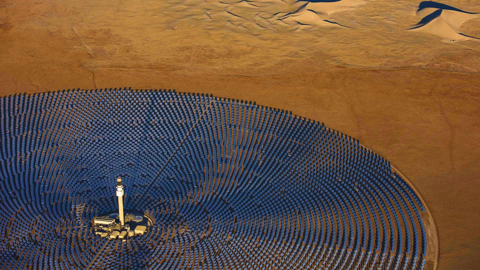 2015年开始运行的新月沙丘太阳能项目,不像其它大多数用合成油作为中介液体的聚光太阳能电站一样,它使用具有更有利的热性能的熔盐。当需要用电时,熔盐可以泵入到将水转换成水蒸气的热交换器中,带动涡轮旋转来发电,冷却盐回流到储蓄槽中,周期循环重复。