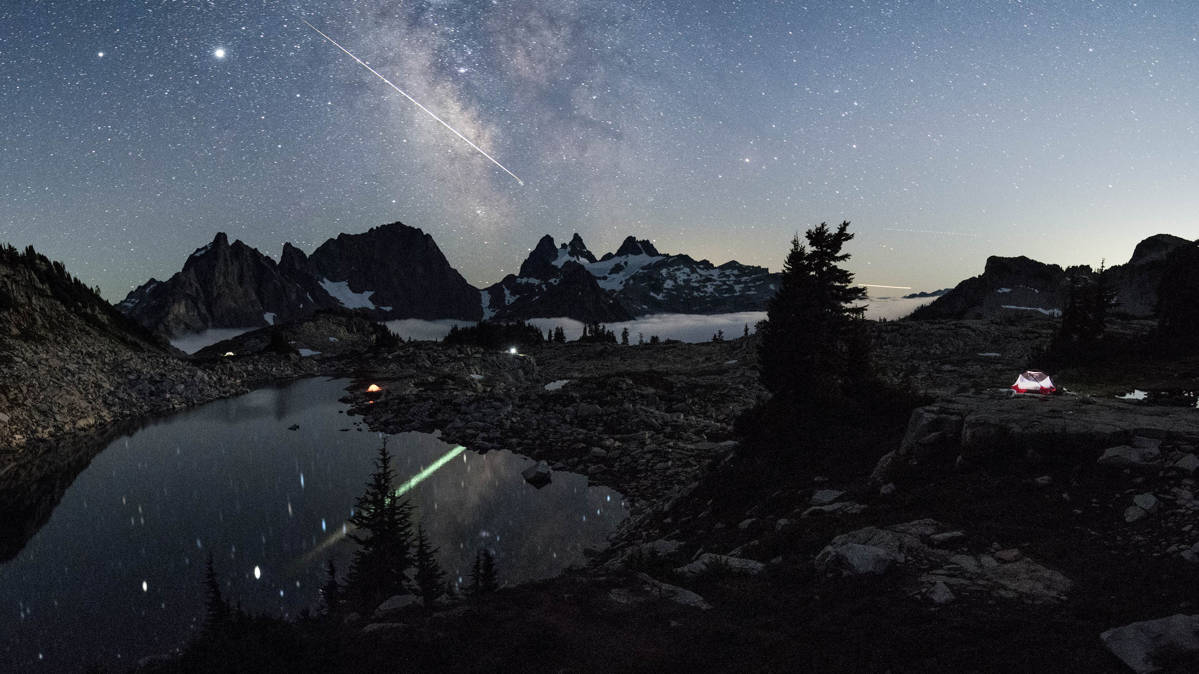 今天图片中璀璨的星空来自于坦克湖,它位于高山湖泊荒野区。高山湖泊荒野占地超过40万英亩,位于风景如画的华盛顿州中部喀斯喀特山脉。荒野位于喀斯喀特山脉北段的斯诺夸米山口和史蒂文斯山口之间,其中包括被称为韦纳奇山脉的子山脉,该山脉构成了韦纳奇-雅基马分水岭。