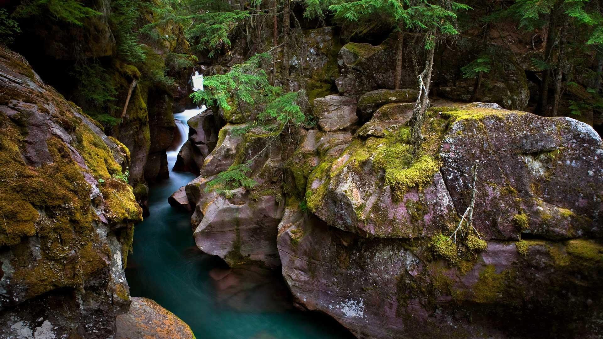 冰川国家公园内的雪崩溪,美国蒙大拿州
