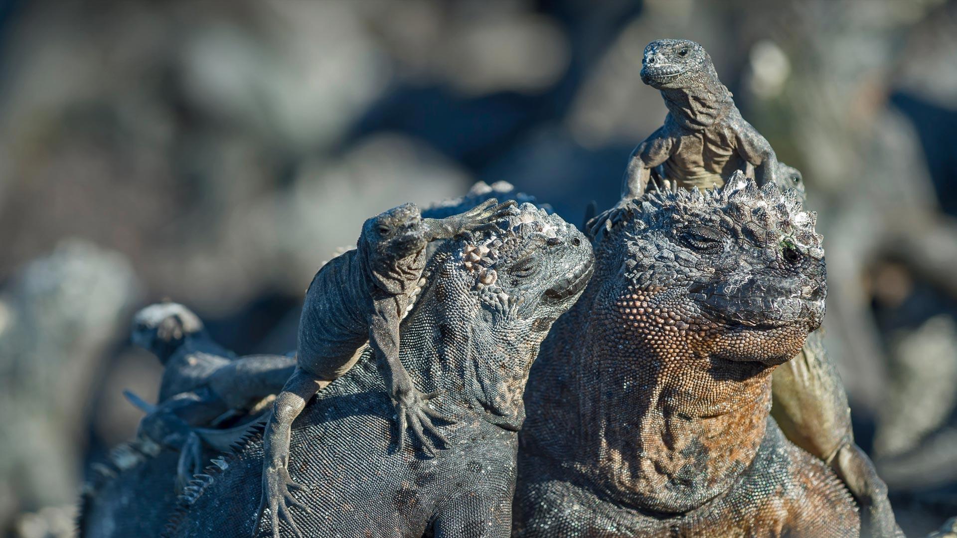 海鬣蜥,厄瓜多尔加拉帕戈斯群岛 © Tui De Roy/Minden Pictures 陆地水上 无所不能 与一般的鬣蜥不同的是,这里的海鬣蜥是优雅的游泳者,拥有独特的海洋觅食能力。据说它们是从大约1000万年前的陆生鬣蜥进化而来的。它们只在加拉帕戈斯群岛被发现,但在那里它们未能给一些早期欧洲探险者留下深刻印象。达尔文将这些蜥蜴形容为笨拙的“黑暗小恶魔”。 它们 群岛 厄瓜多尔 游泳 觅食 加拉帕戈斯 优雅 万年前 黑暗 蜥蜴 探险者 达尔文 印象 陆生 深刻