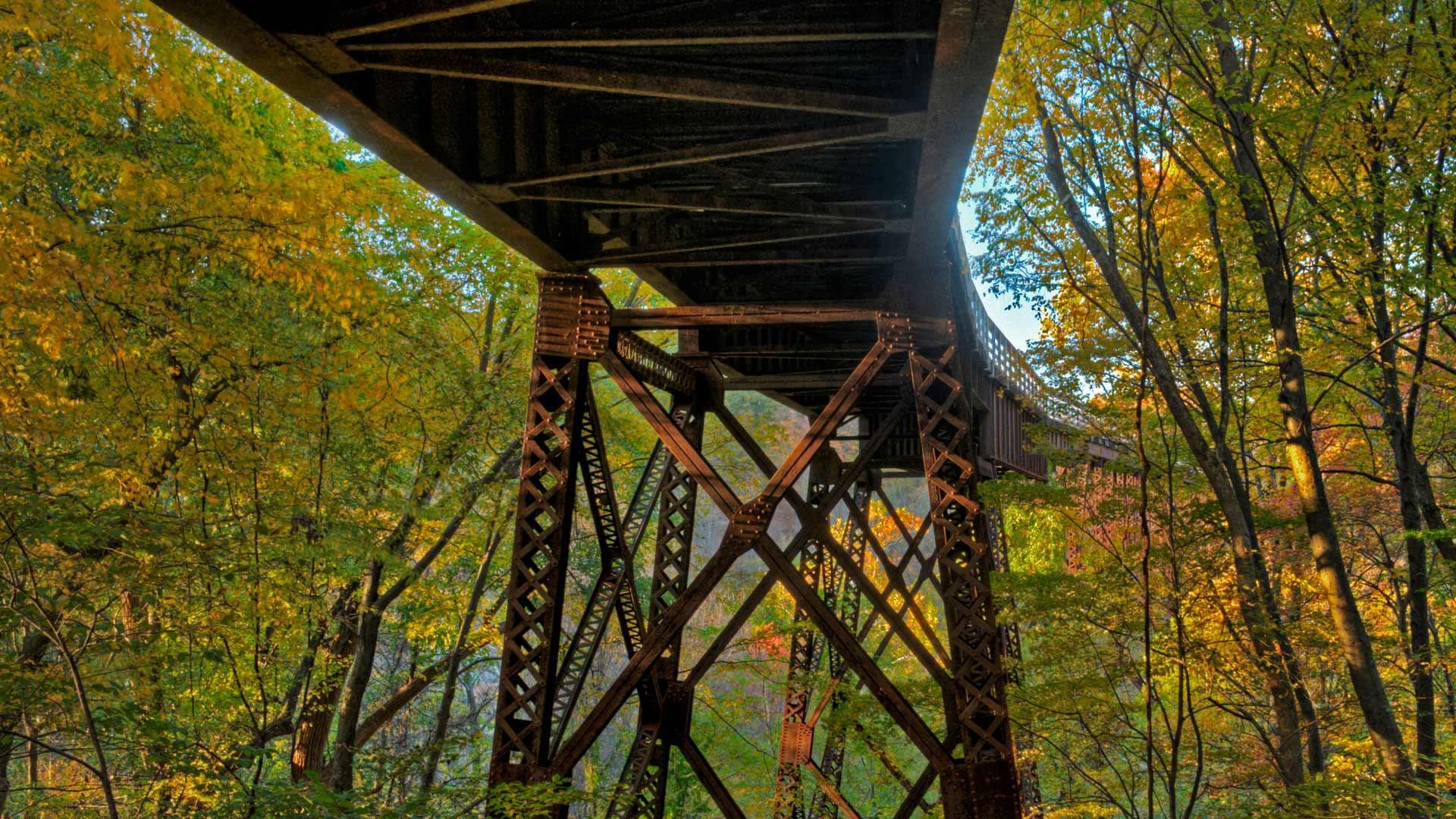在纽约州罗森代尔,火车驶过历史悠久的罗森代尔高架桥已经40年了。这座高达150英尺的高架桥在1872年开放那天是美国最高跨度的桥梁,它是由Wallkill Valley铁路公司建造的。如今,高架桥已经有了新的用途,变成了一条公共人行道,开放给所有人享受。