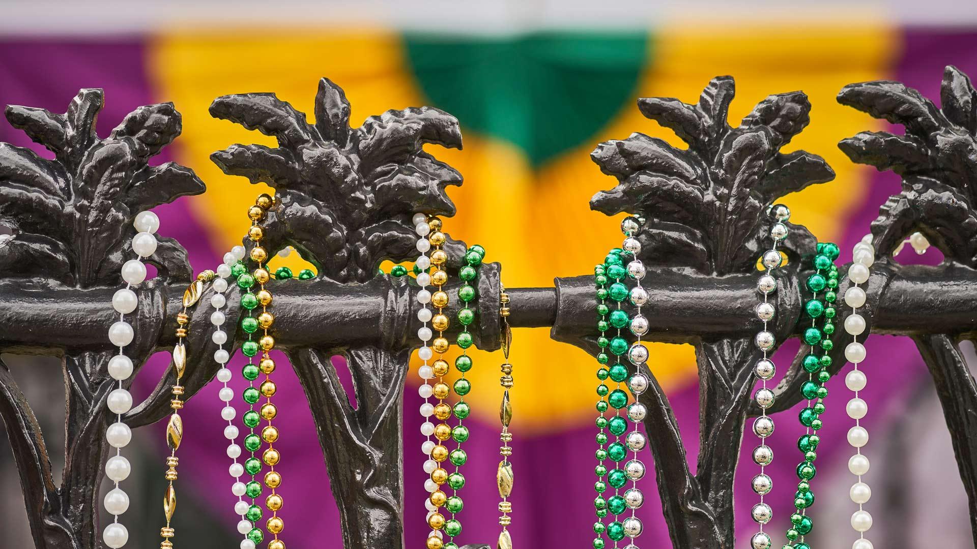 Mardi Gras beads in the Marigny, New Orleans © Erik Pronske Photography/Getty Images Let the good times roll! Mardi Gras beads in the Marigny, New Orleans