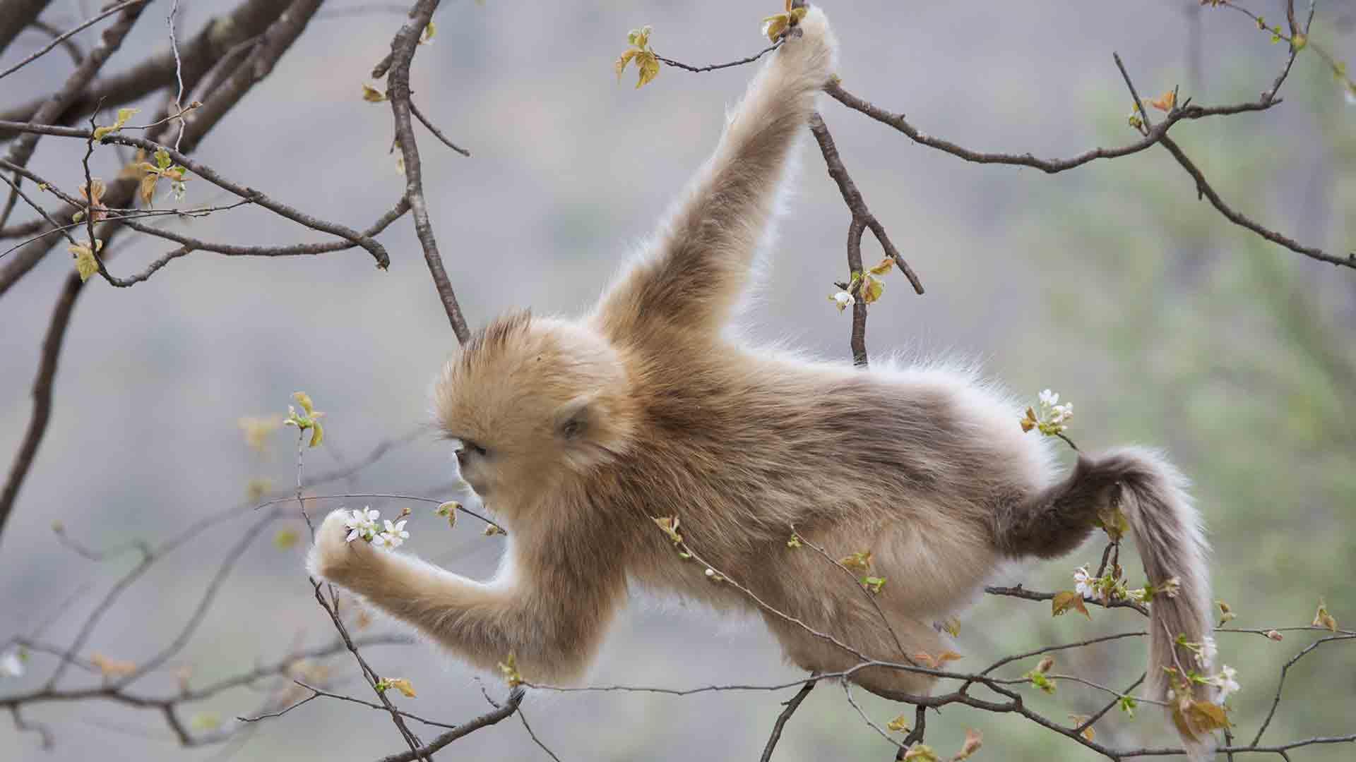 你一定已经感受到明显的温度变化,没错,春天已经悄无声息的到来了。在陕西秦岭的周至自然保护区,一只金丝猴也似乎感受到了逐渐变暖的气候,它们也开始出来玩耍觅食,瞧!这只淘气的金丝猴找到了这个春天的第一份食物——一朵粉嫩的樱花,这样的画面看起来实在是温馨至极。