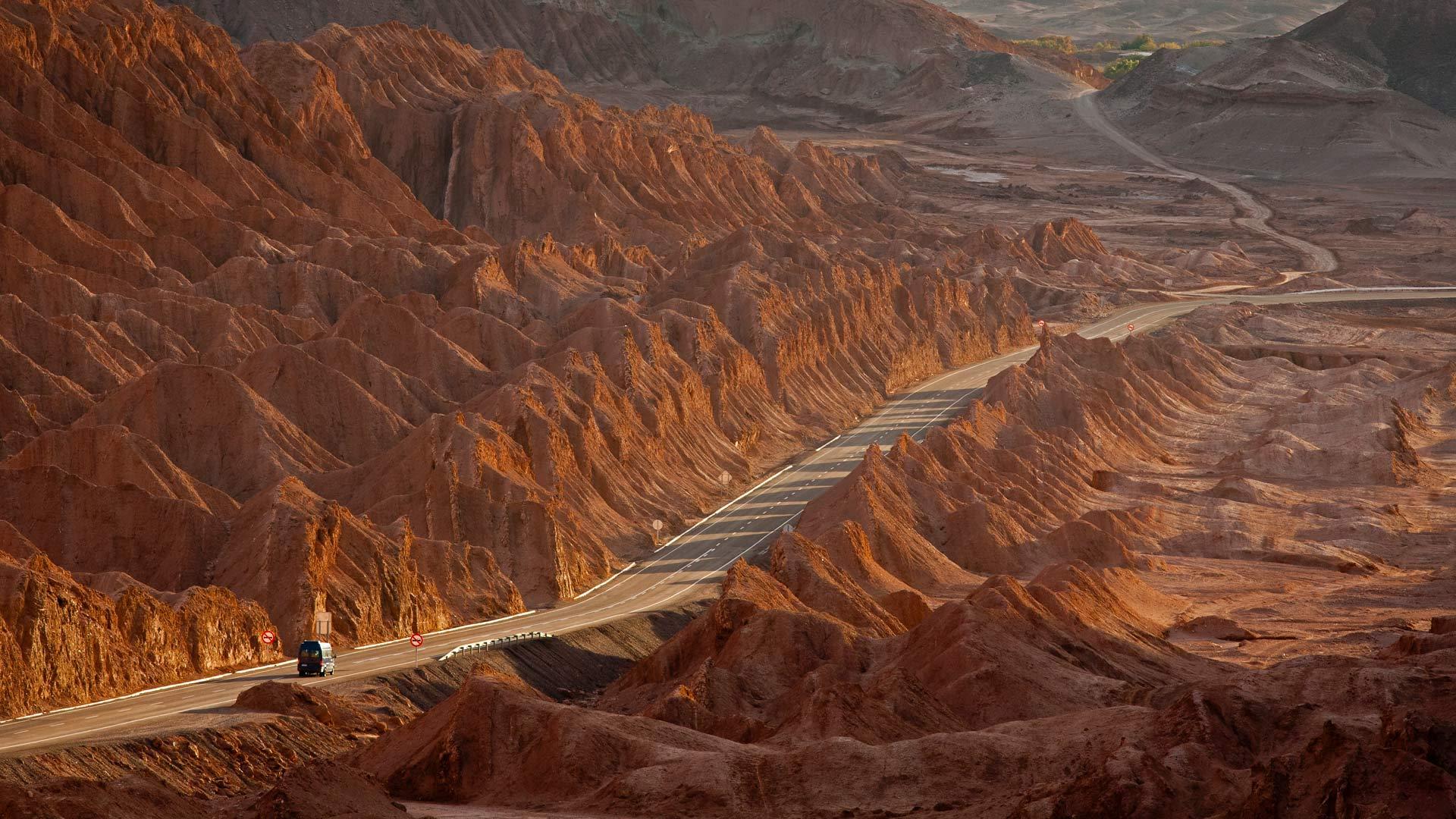 多梅科山脉的岩盐山麓,智利 © Sergio Ballivian/Tandem Stills + Motion “天国的阶梯” 安第斯山脉的这一区域呈南北走向,与智利海岸线平行。图中所展示的是智利多梅科山脉的岩盐山麓,如果你再往西走一点,向太平洋海岸进发,就会来到阿塔卡马沙漠,这是一个非常干燥的高海拔地区,由于这里特殊的环境和地形,NASA曾用这里来模拟火星。 这里 海岸 山脉 沙漠 展示 图中 智利 海岸线 安第斯山脉 火星 山麓 阿塔卡马 曾用 NASA 干燥