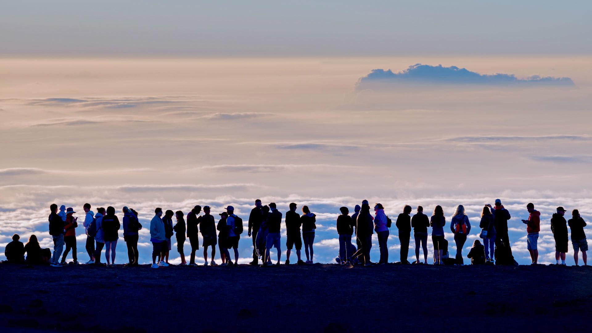 海勒卡拉国家公园的哈莱亚卡拉火山顶端的游客,美国夏威夷州