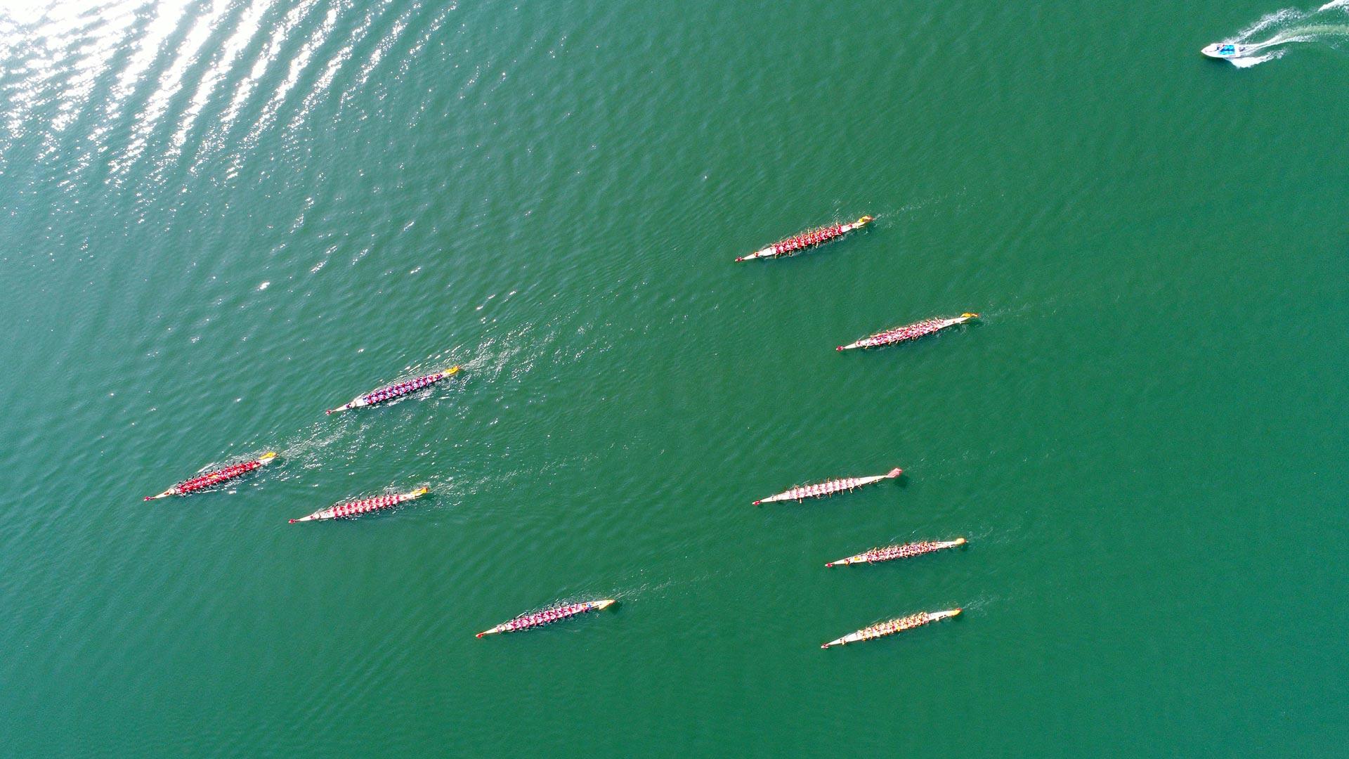 【今日端午节】参加襄阳龙舟大赛的12只龙舟,中国湖北省襄阳市(