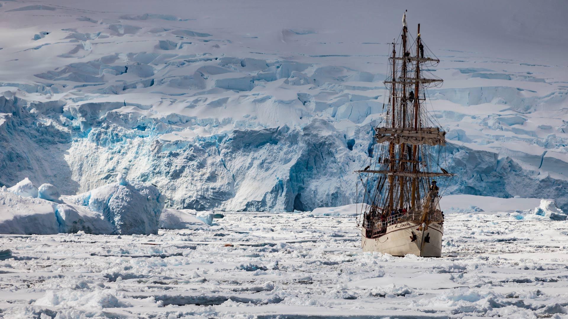 航行在佩诺拉海峡的欧罗巴帆船,南极洲南极半岛