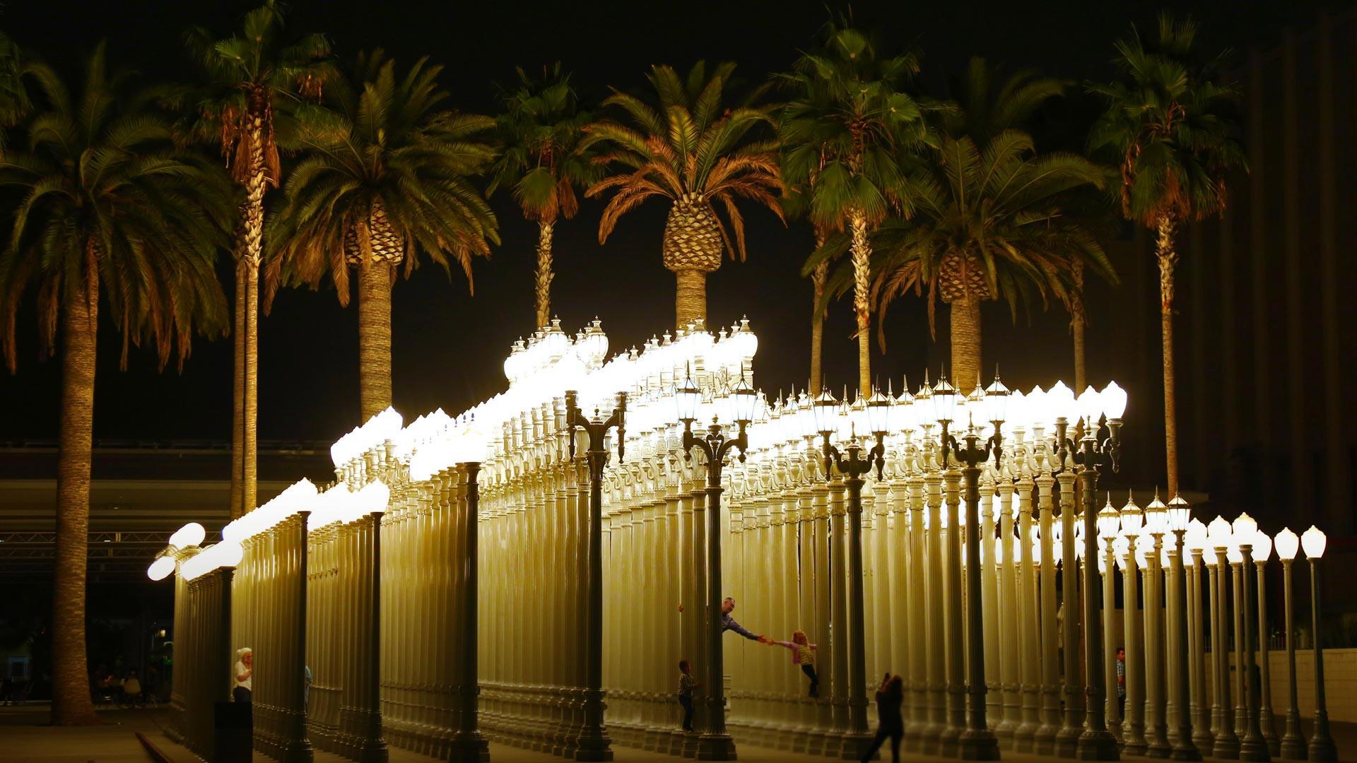 如果你参观了洛杉矶艺术博物馆,你就可以在这个由202个街灯组成的艺术装置中穿行。艺术家克里斯·伯登在购买了20世纪20年代的街灯后灵感迸发,创作了这件作品。他在2008年推出了这件作品,今年,这些灯泡将换成效率更高的LED灯泡,以模仿原本柔和的白炽灯。而旁边的椰子树更为“城市之光”增添了几分艺术气息!