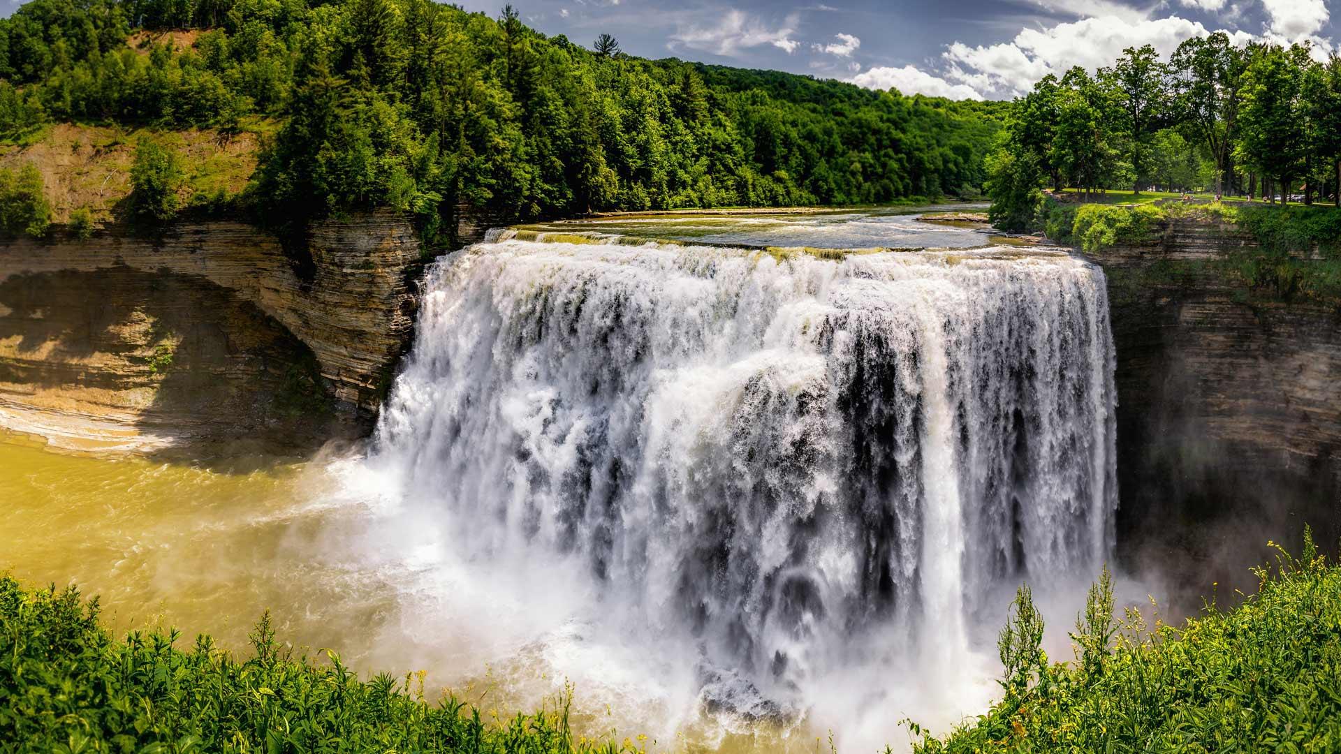 纽约州并不是只有摩天大楼和熙熙攘攘的人群,其实它还拥有多种多样的地理环境,包括1788年7月26日纽约州正式加入联邦时的一些原始地区。为了纪念纽约州的成立之日,我们来到了罗切斯特附近的一个荒野——莱奇沃思州立公园。这里被誉为“东方大峡谷”,在此您可以感受到三大瀑布怒吼的震撼感觉。