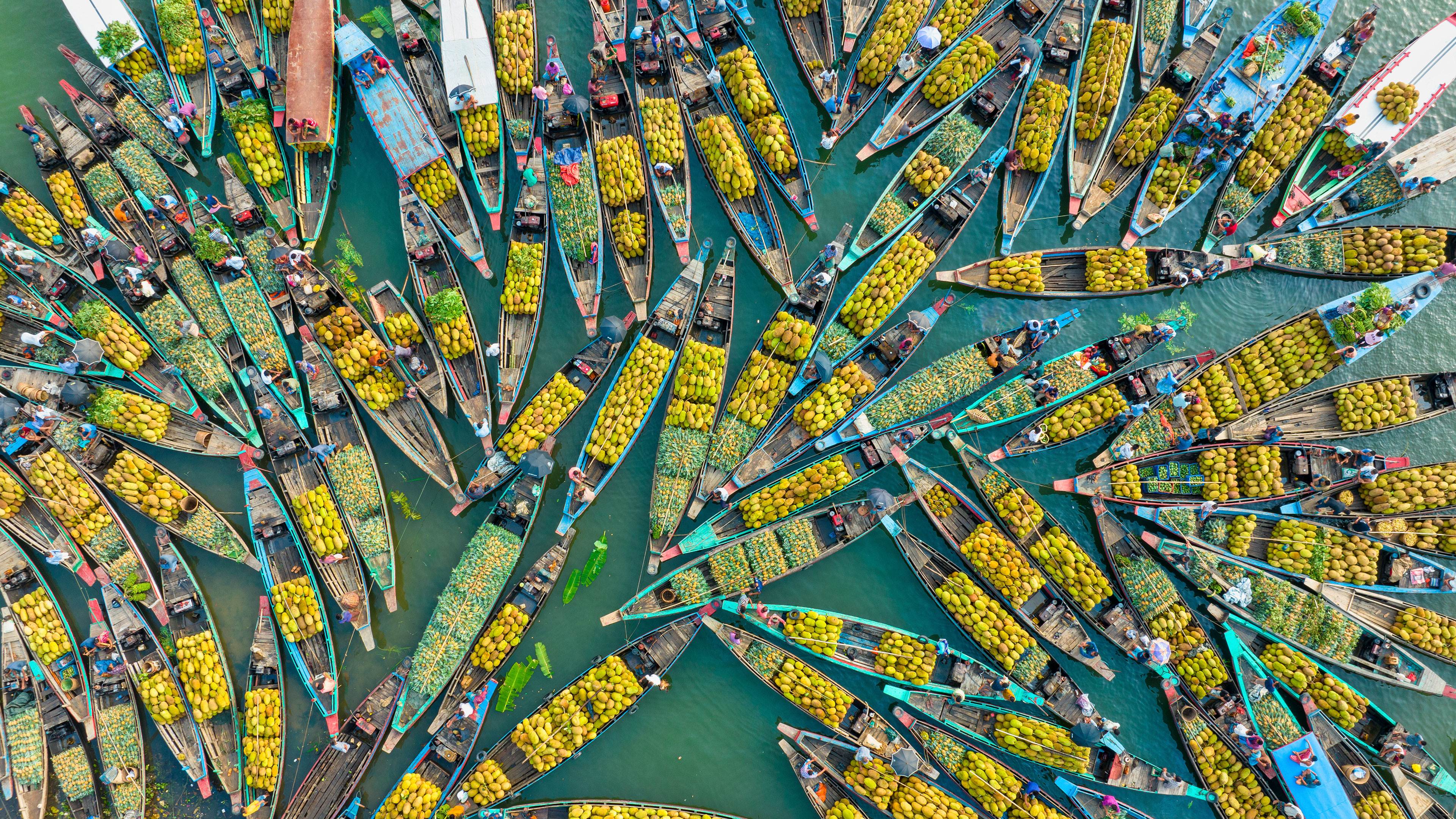 Floating market, Kaptai Lake, Rangamati, Bangladesh © Azim Khan Ronnie/Amazing Aerial Agency There's a boatload of bargains here Floating market, Kaptai Lake, Rangamati, Bangladesh