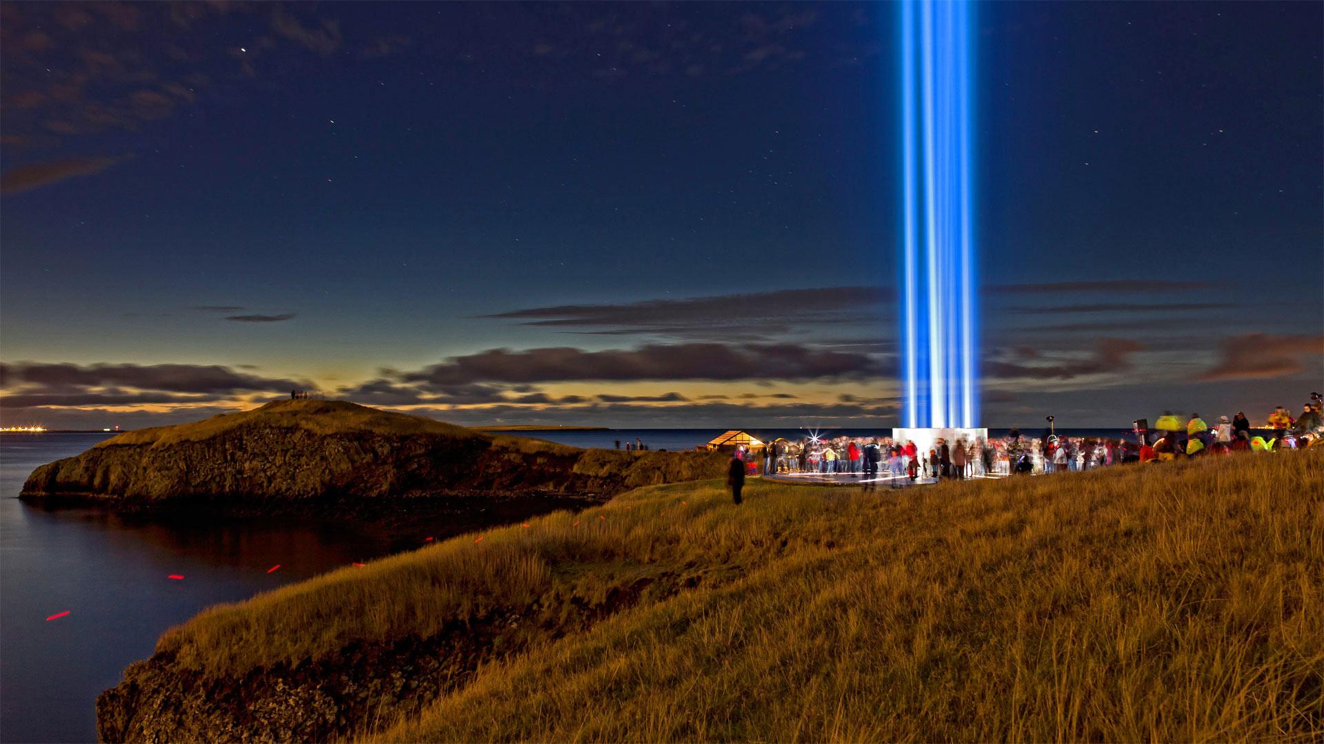 今天是国际和平日,这是一个由联合国创建并于1982年首次庆祝的节日。为了纪念这个日子,我们来到了位于冰岛首都雷克雅未克北部的维泽岛,这座岛是梦想和平塔的所在地。梦想和平塔是小野洋子为亡夫约翰列侬树立的纪念塔,它由光圈和镜子组成,直冲夜空的光束会在空中复合并形成光塔。据称,在世界最北端的首都点亮“和平之光”,蕴涵着照亮全世界的意义。