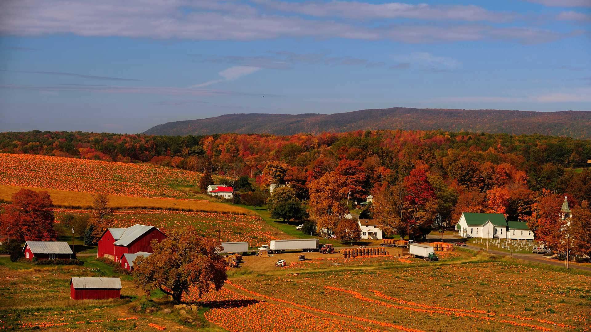 如果你仔细观察这张壁纸,你会发现在那倾斜的丘陵上布满了密密麻麻的桔红色南瓜!关于南瓜最最经典的电影当然是《这是南瓜大王哦!查理·布朗!》了,这部动画片于1966年首次上映。在这部动画片中,有些人认为大南瓜是信仰的象征,而有些人则把大南瓜看作是存在危机的隐喻。不管怎样,这部电影是经典之作,在这个收获的季节真的值得再去细细回味一番!