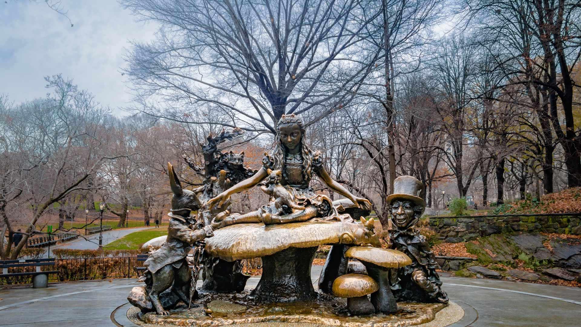 纽约中央公园内的爱丽丝梦游仙境雕塑,美国纽约