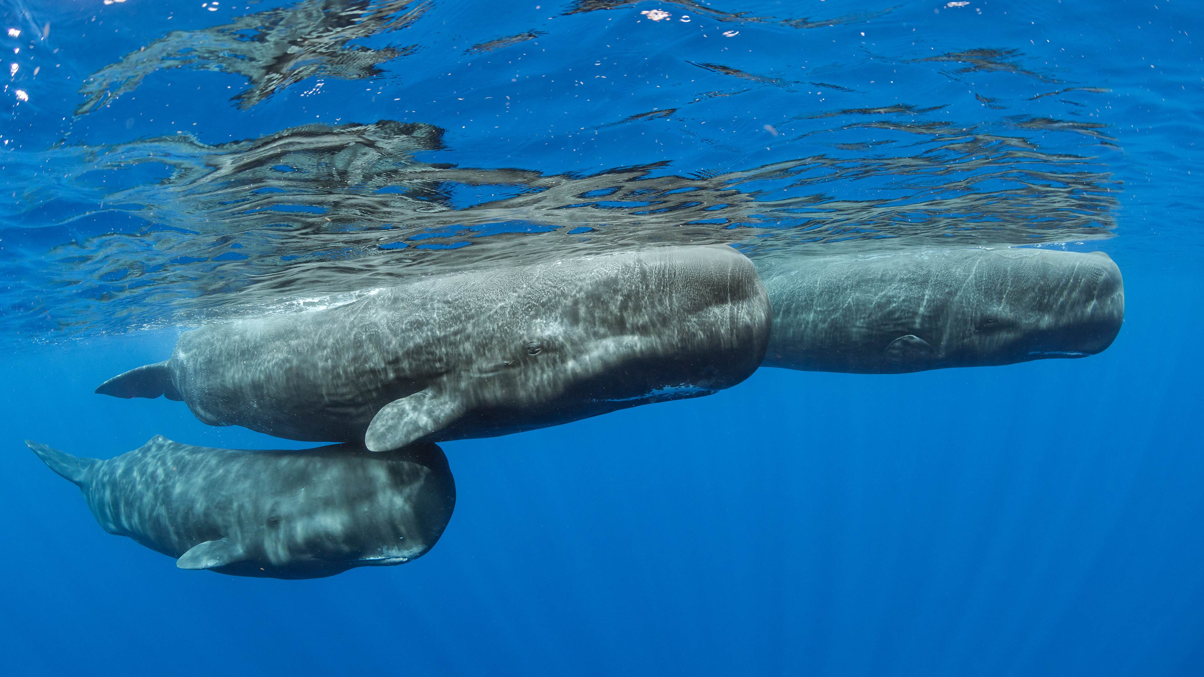 Sperm whale pod surfacing, Dominica © Franco Banfi/Minden Pictures Taking a breather Sperm whale pod surfacing, Dominica