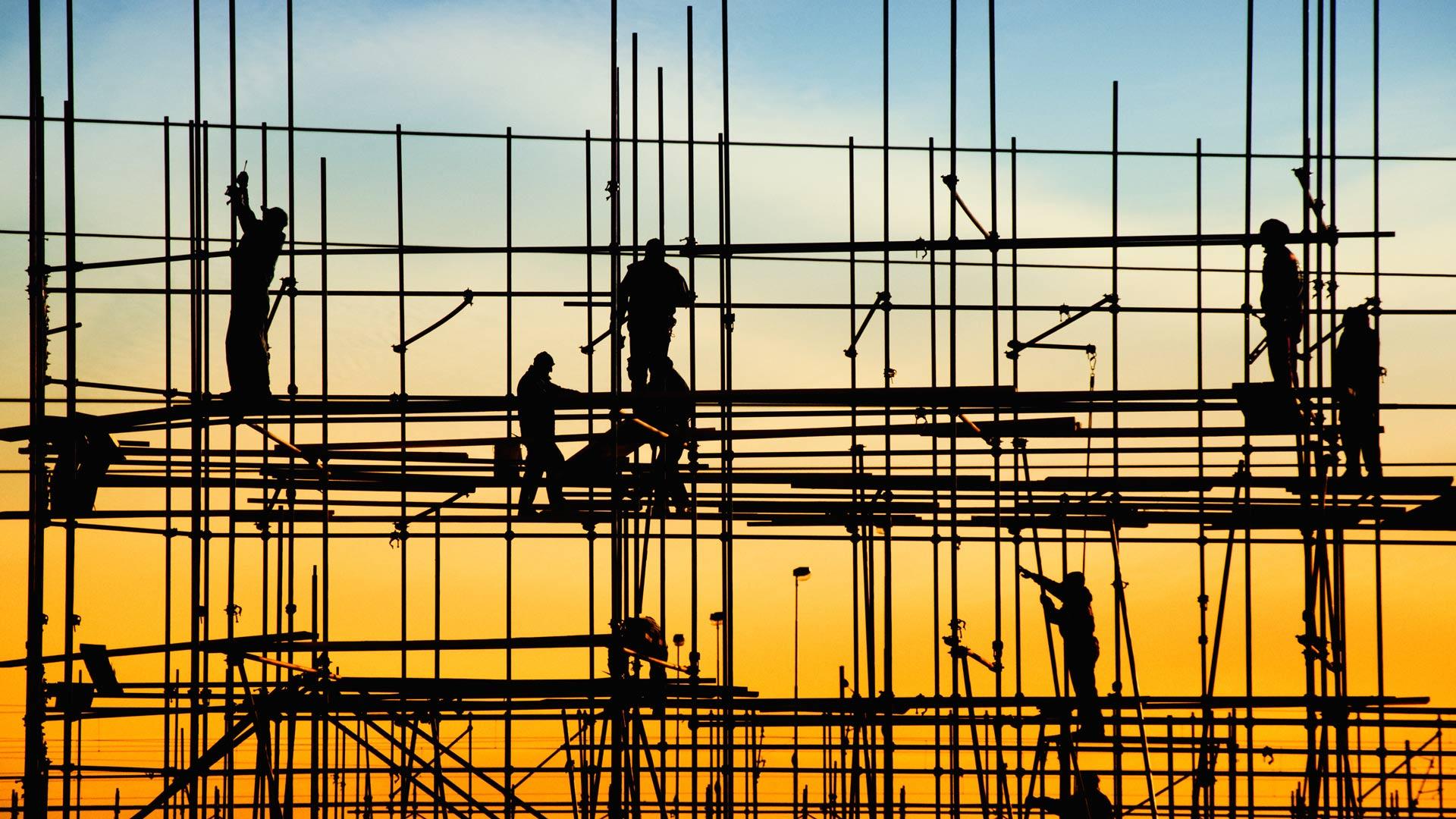 Construction workers on scaffolding © Bits and Splits/Shutterstock Time to clock out Construction workers on scaffolding