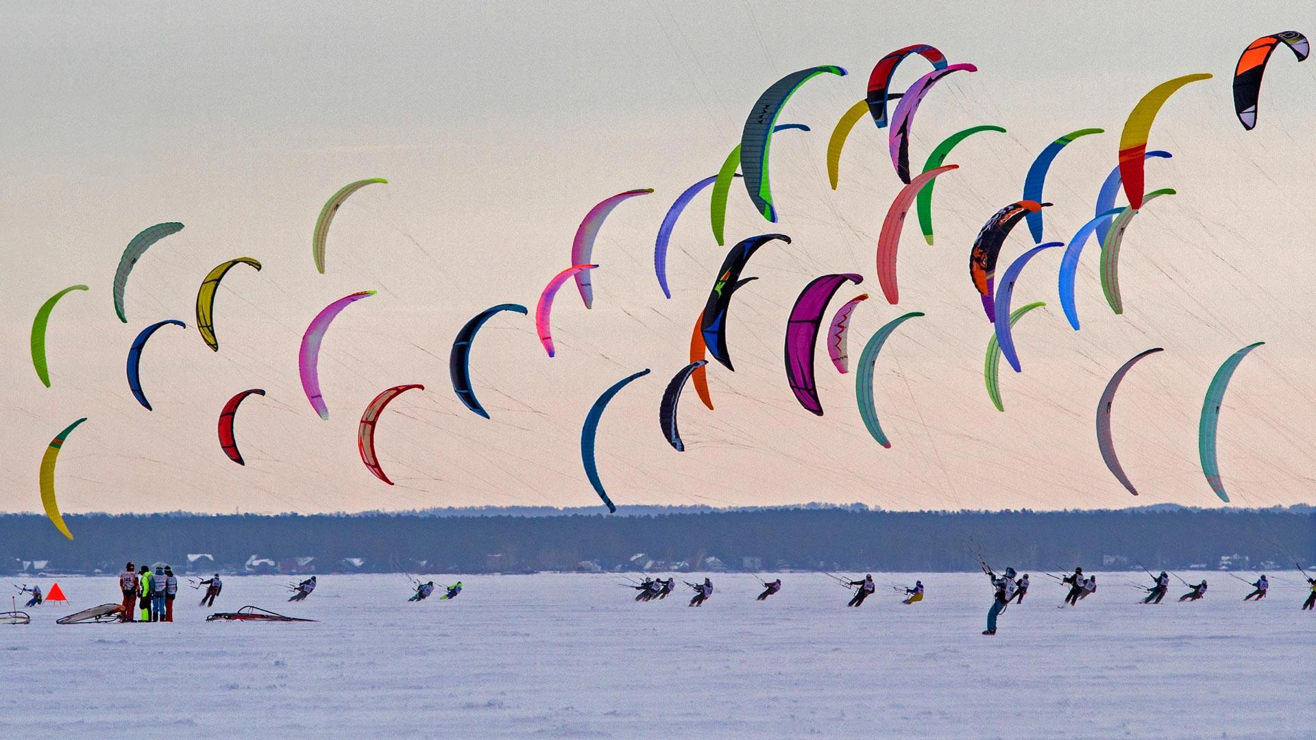 “西伯利亚杯”冬季风筝冲浪比赛,俄罗斯新西伯利亚