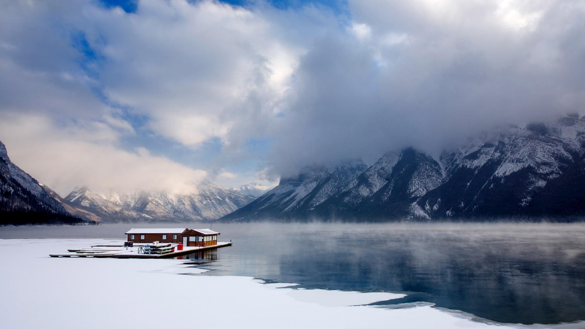 明尼万卡湖上的船屋,加拿大阿尔伯塔省班夫国家公园
