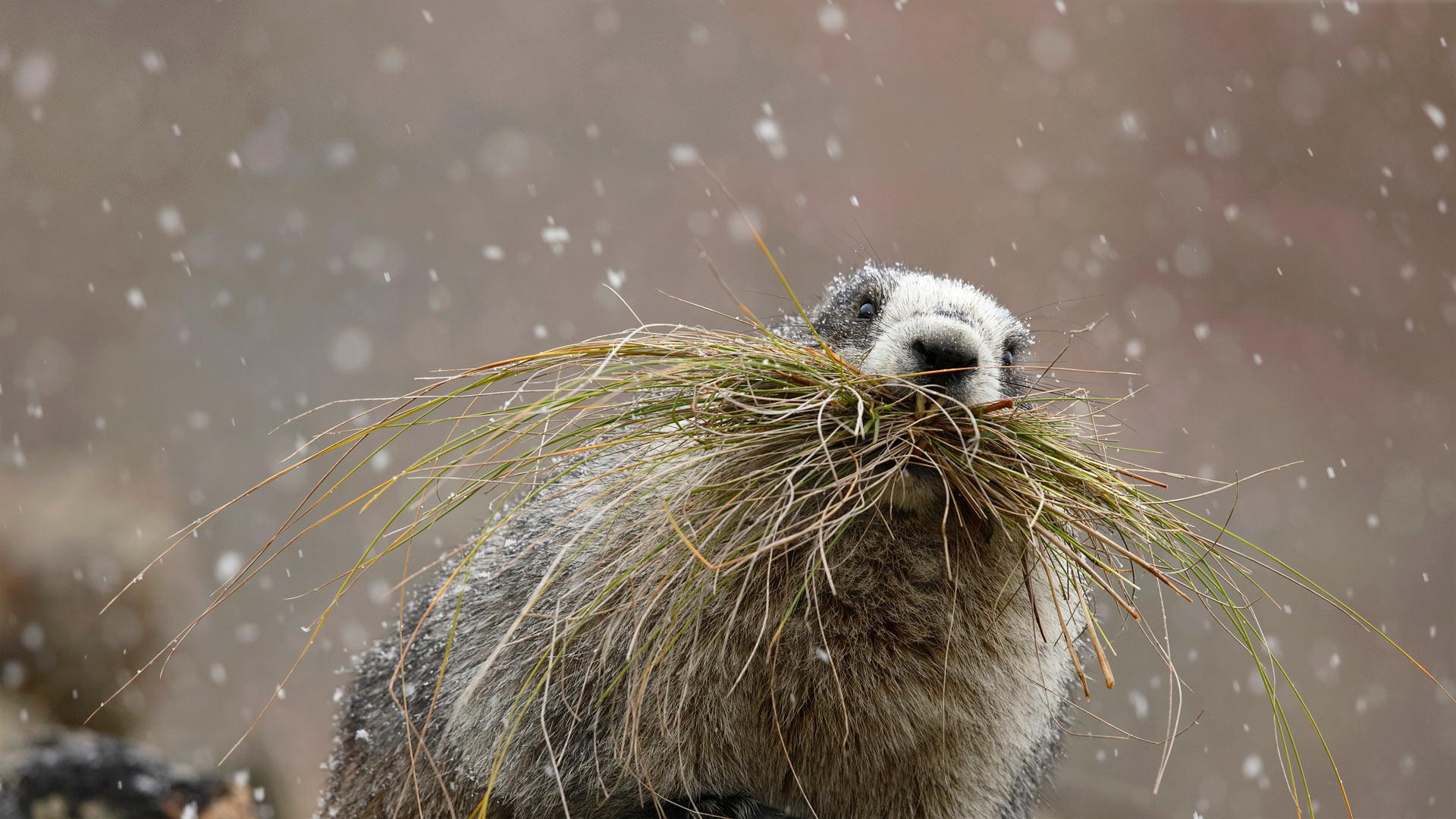 这只灰白旱獭在阿拉斯加的德纳里国家公园呆萌地含着枯草,你没猜错,今天就是土拨鼠日了!土拨鼠日是美国的传统节日,它起源于生活在宾夕法尼亚州的荷兰人。不过,土拨鼠并不是唯一被认为能预测天气的动物。据说你可以通过检查毛毛虫背上的条纹来预测即将到来的严冬。在德国,人们曾经指望獾来预测春天的到来。然而,没有什么动物的天气预报能像土拨鼠普苏塔尼·菲尔一样出名。一起来走进这些小家伙的世界吧!