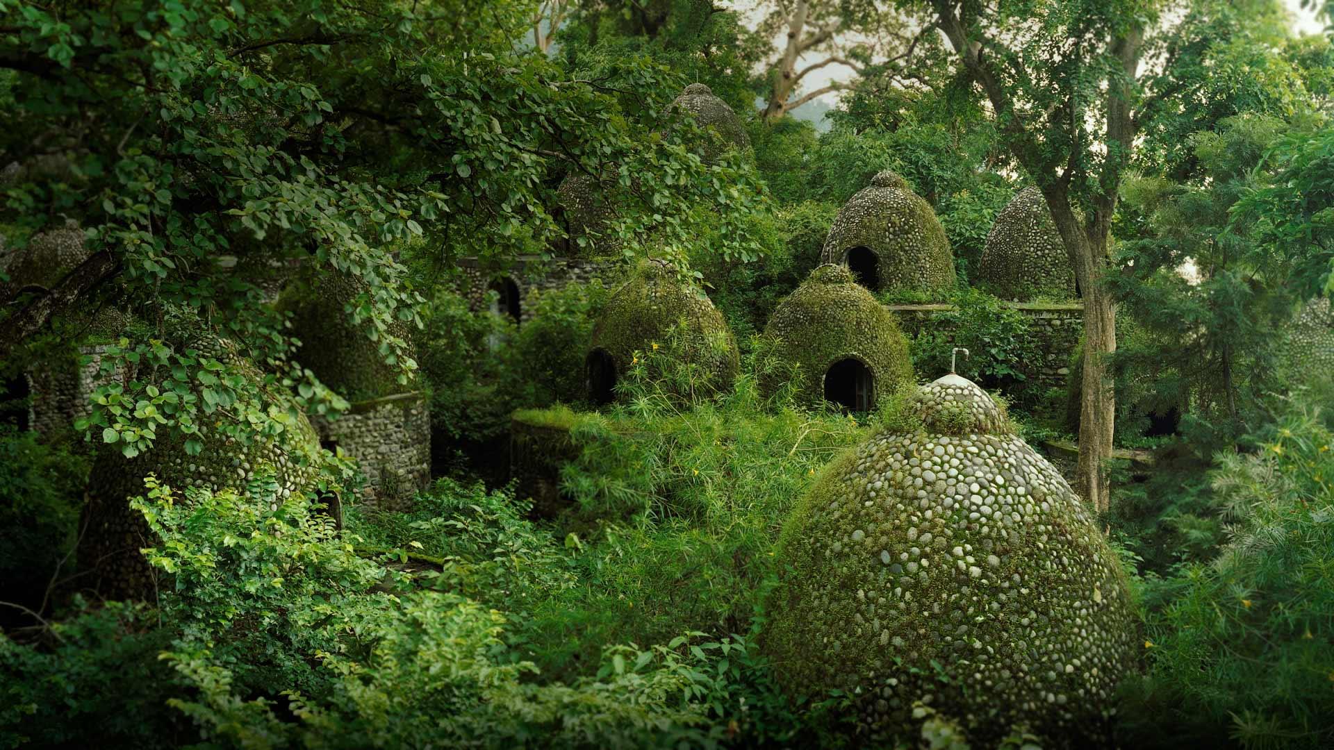 披头士修道院里的冥想石洞,印度瑞诗凯诗