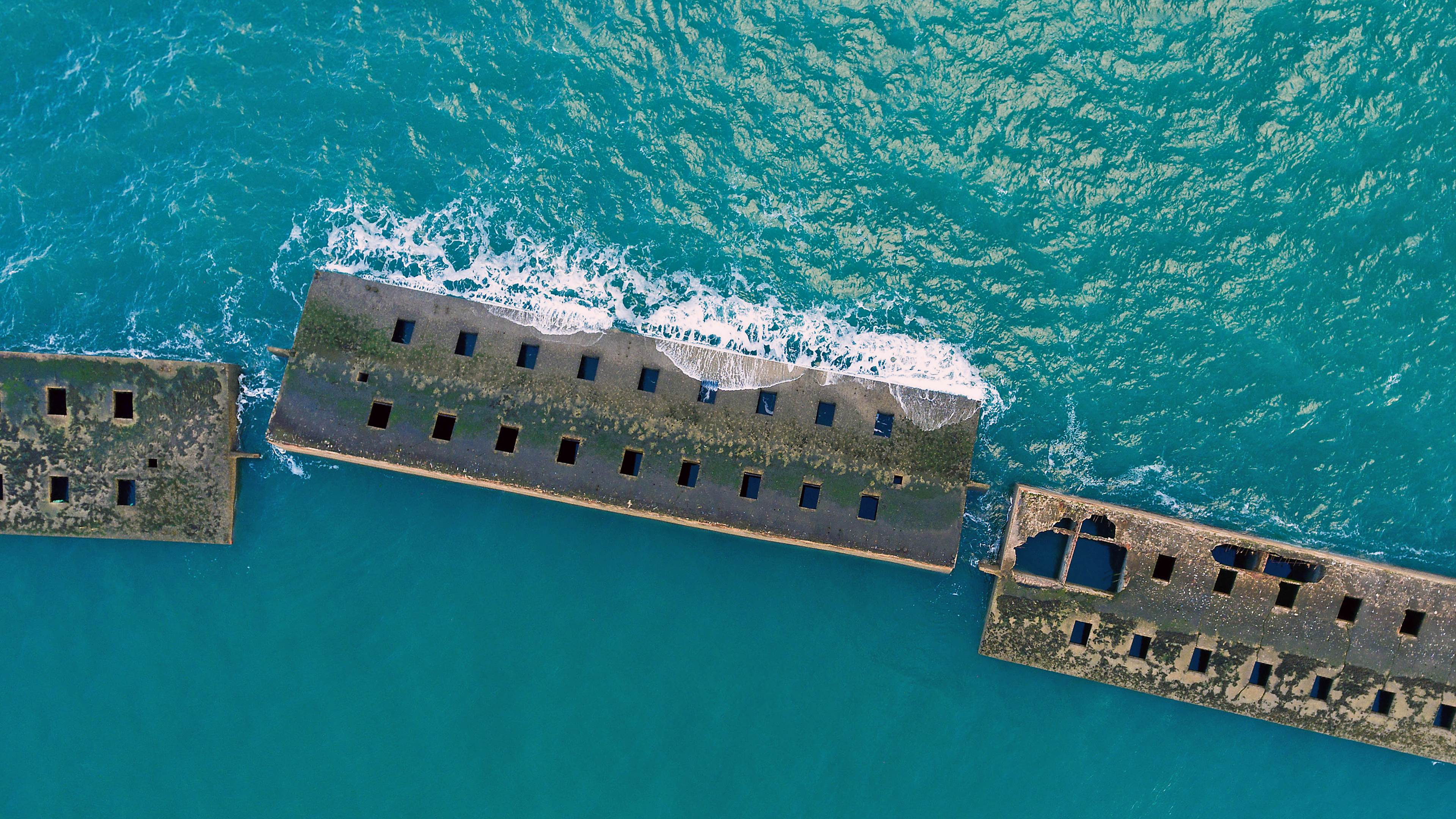 诺曼底入侵后的桑树港遗址,法国诺曼底Arromanches les Bains (© Javier Gil/Alamy)
