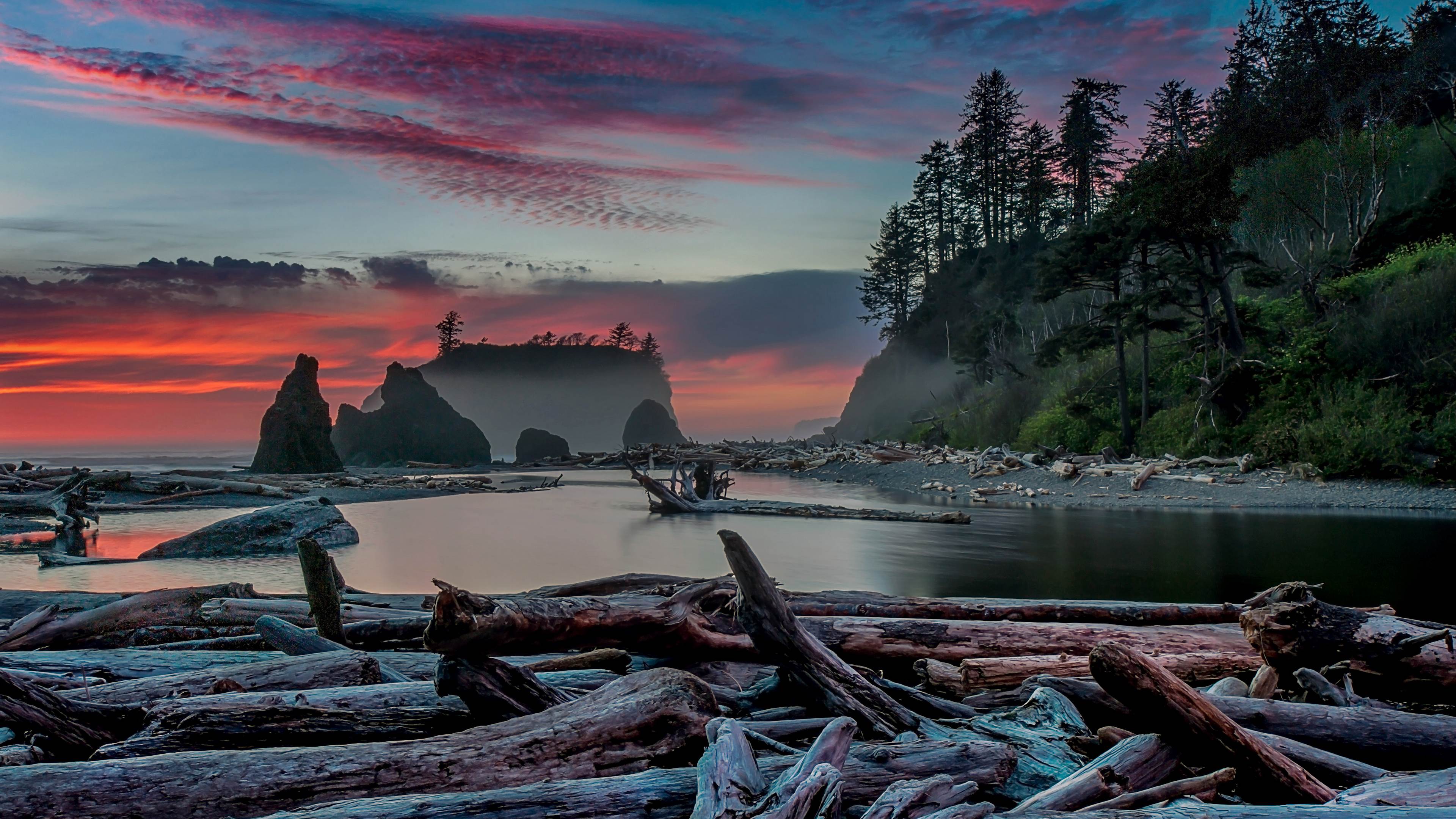 红宝石海滩的日落,华盛顿州奥林匹克国家公园 (© Adam Mowery/Tandem Stills + Motion)