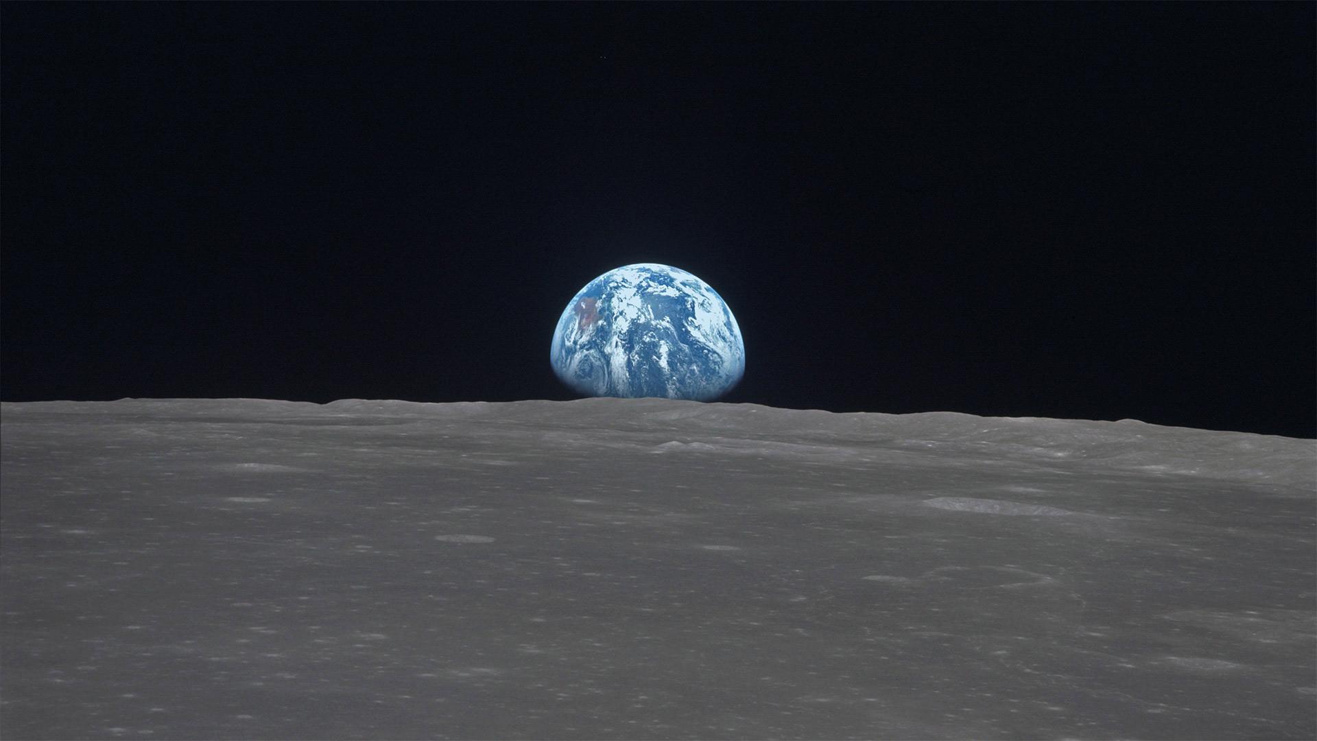 穿过月球上史密斯海的“地出” (© Image Science and Analysis Laboratory, NASA-Johnson Space Center)