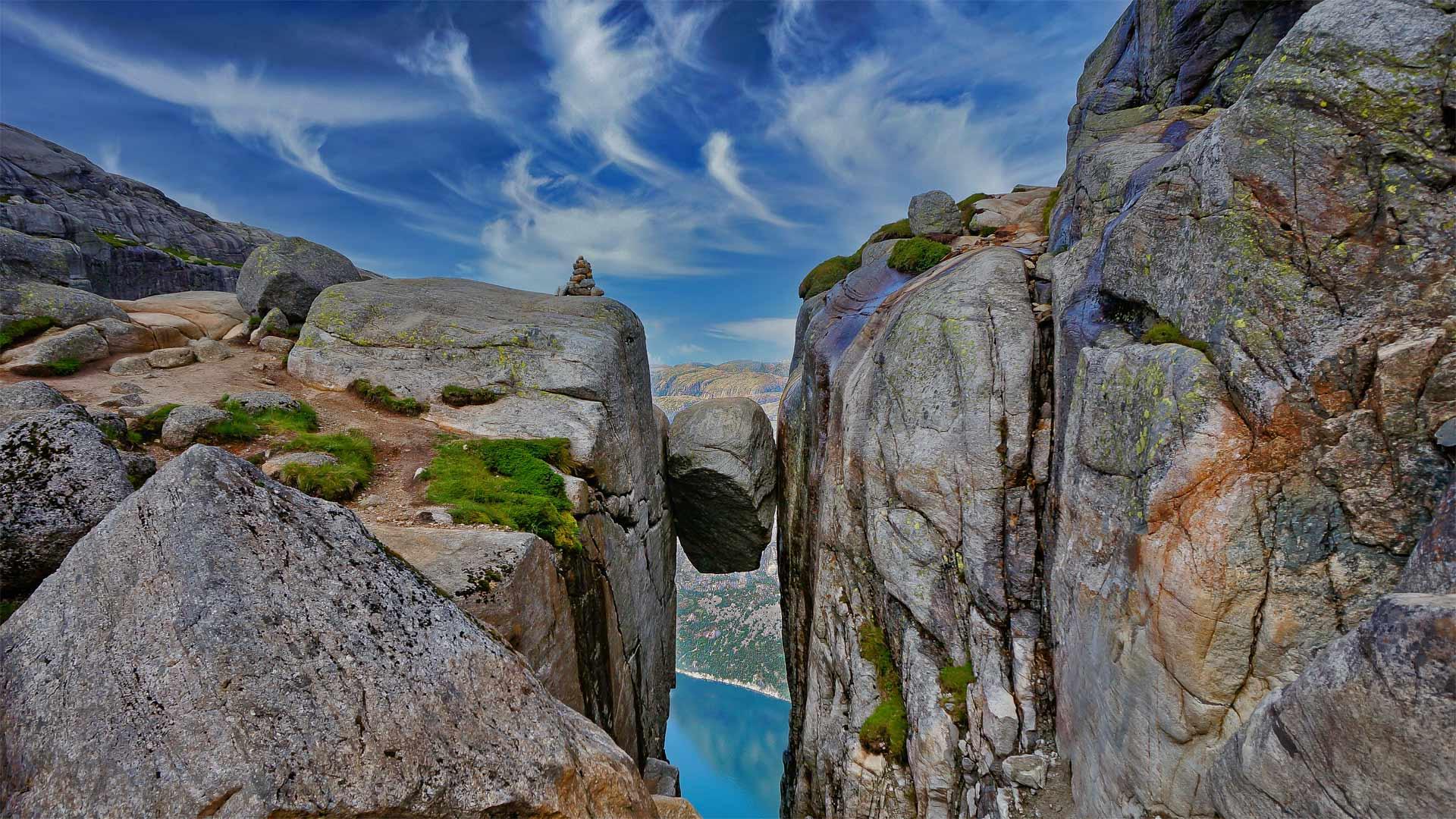 裂缝中的谢拉格伯顿石,挪威谢格拉山 (© Angel FAyE/Getty Images)