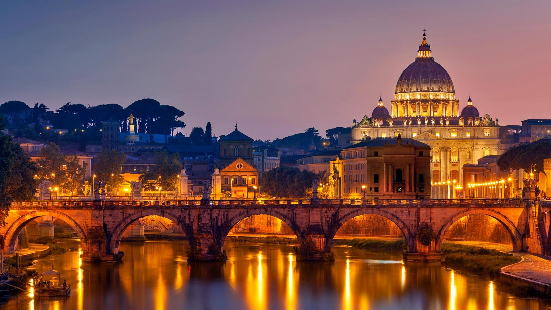 圣天使桥和圣彼得大教堂,意大利罗马 (© robertharding/Masterfile)