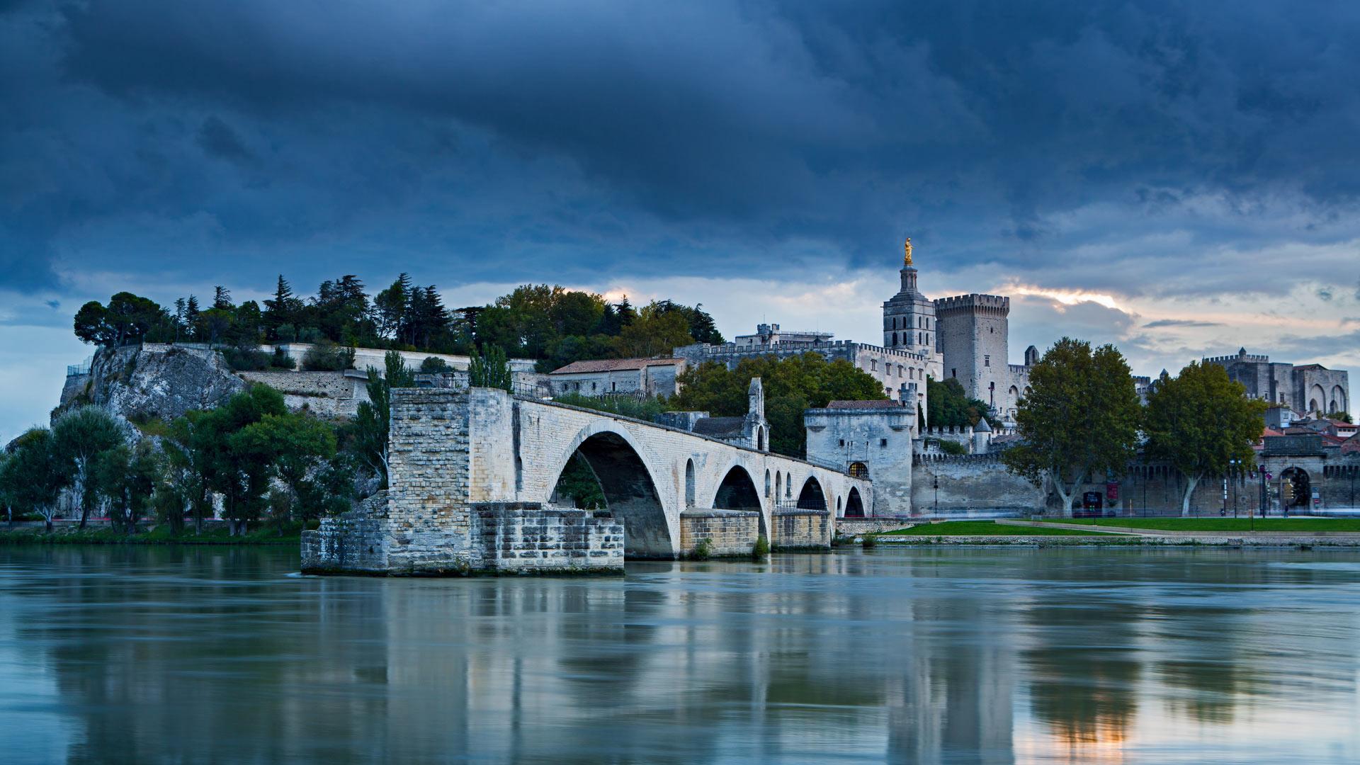 圣贝内泽桥和罗讷河黄昏时刻的美景,法国阿维尼翁 (© David Noton/Minden Pictures)